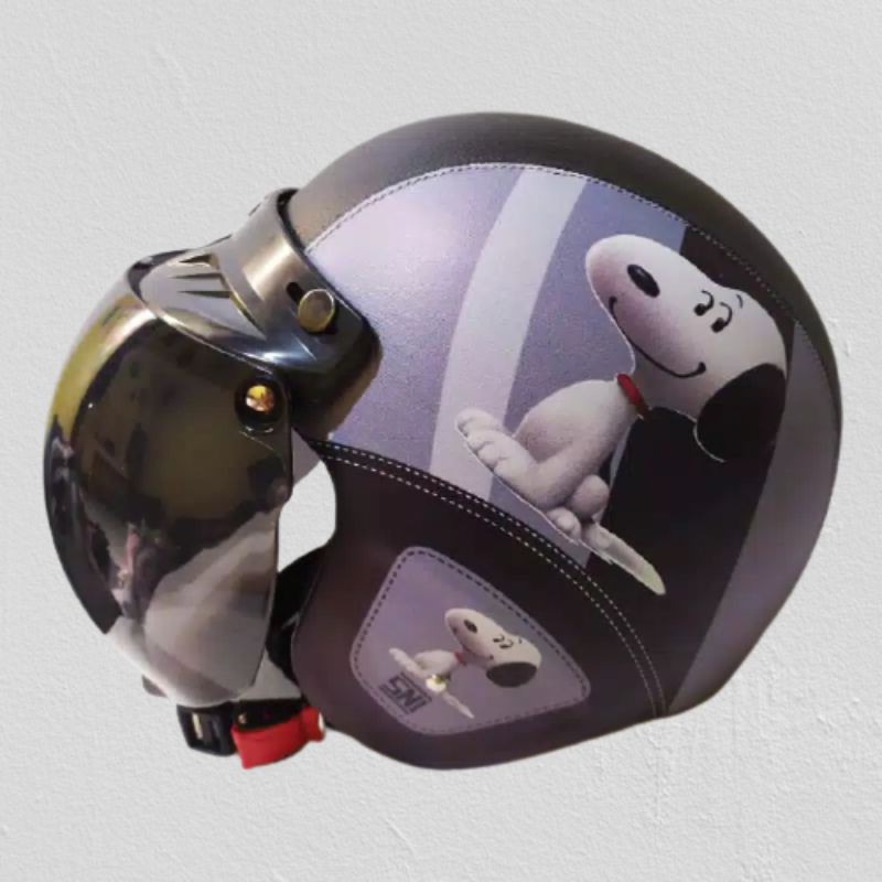 Helm bogo clasik retro Kulit Dewasa Karakter doraemon Kaca Flat Datar Silver