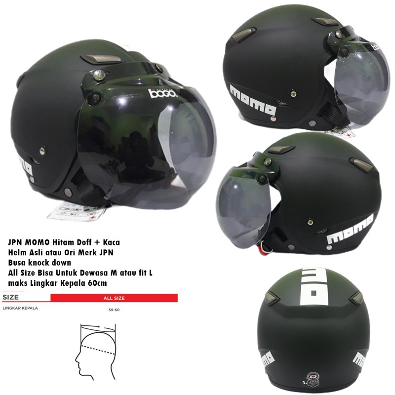 Rifan Juga punya 4 Produk lain terkait Produk Helm Bogo Dewasa Retro Klasik JPN MOMO Vintage Kawai Hitam Doff Kaca Cembung Flat Datar Injak SNI yang perlu Anda lirik karena menarik, Produk itu adalah....
