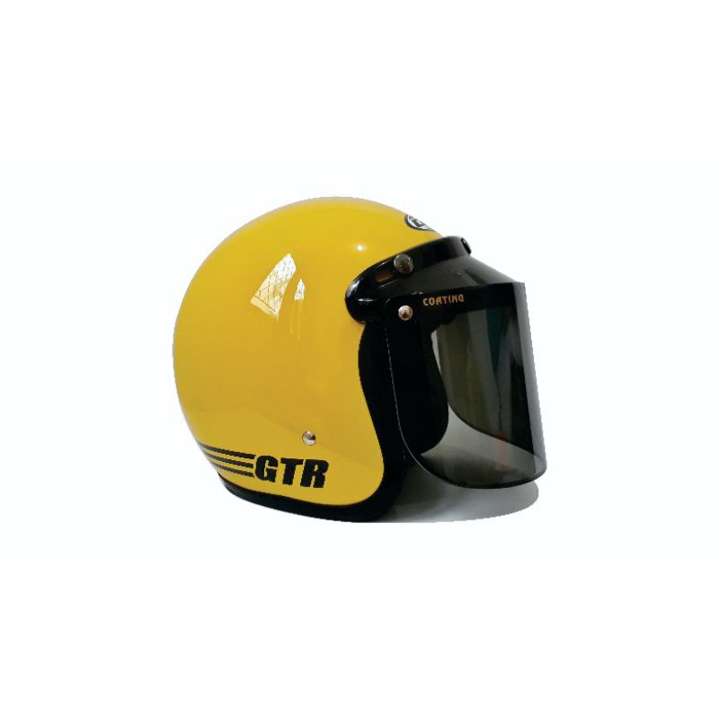 Helm bogo jpn retro arc kuning lemon kaca datar flat visor