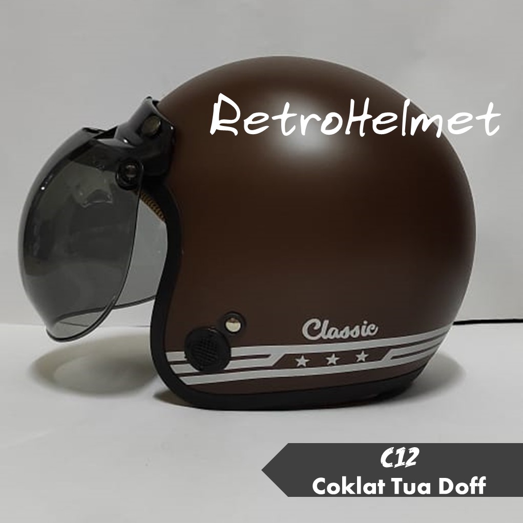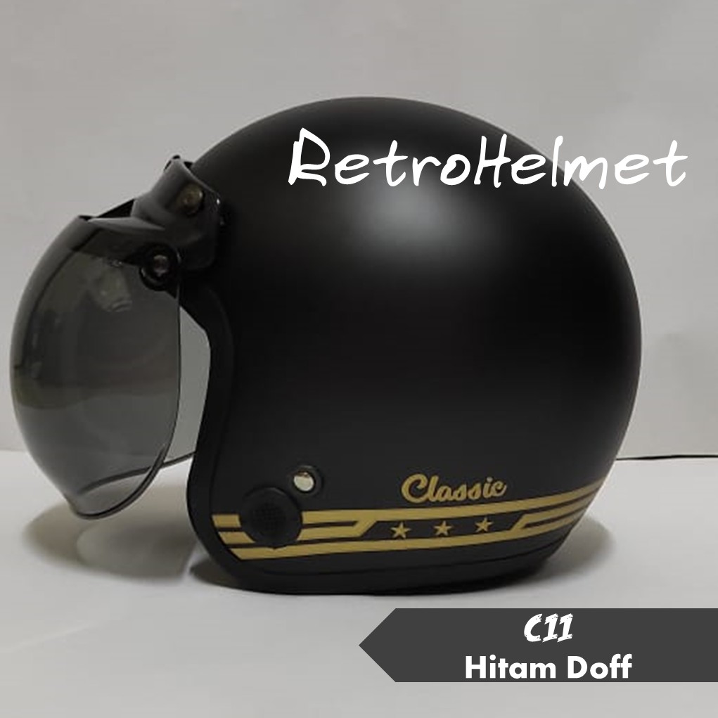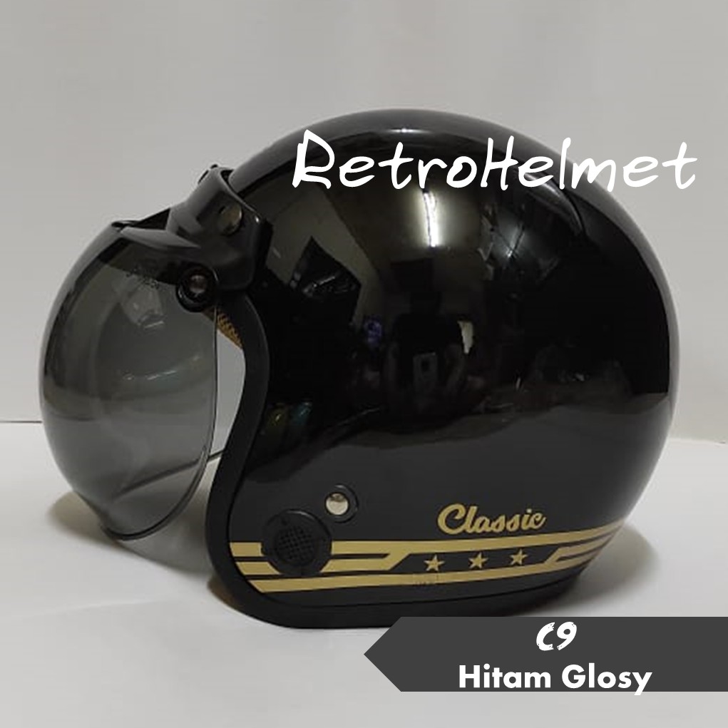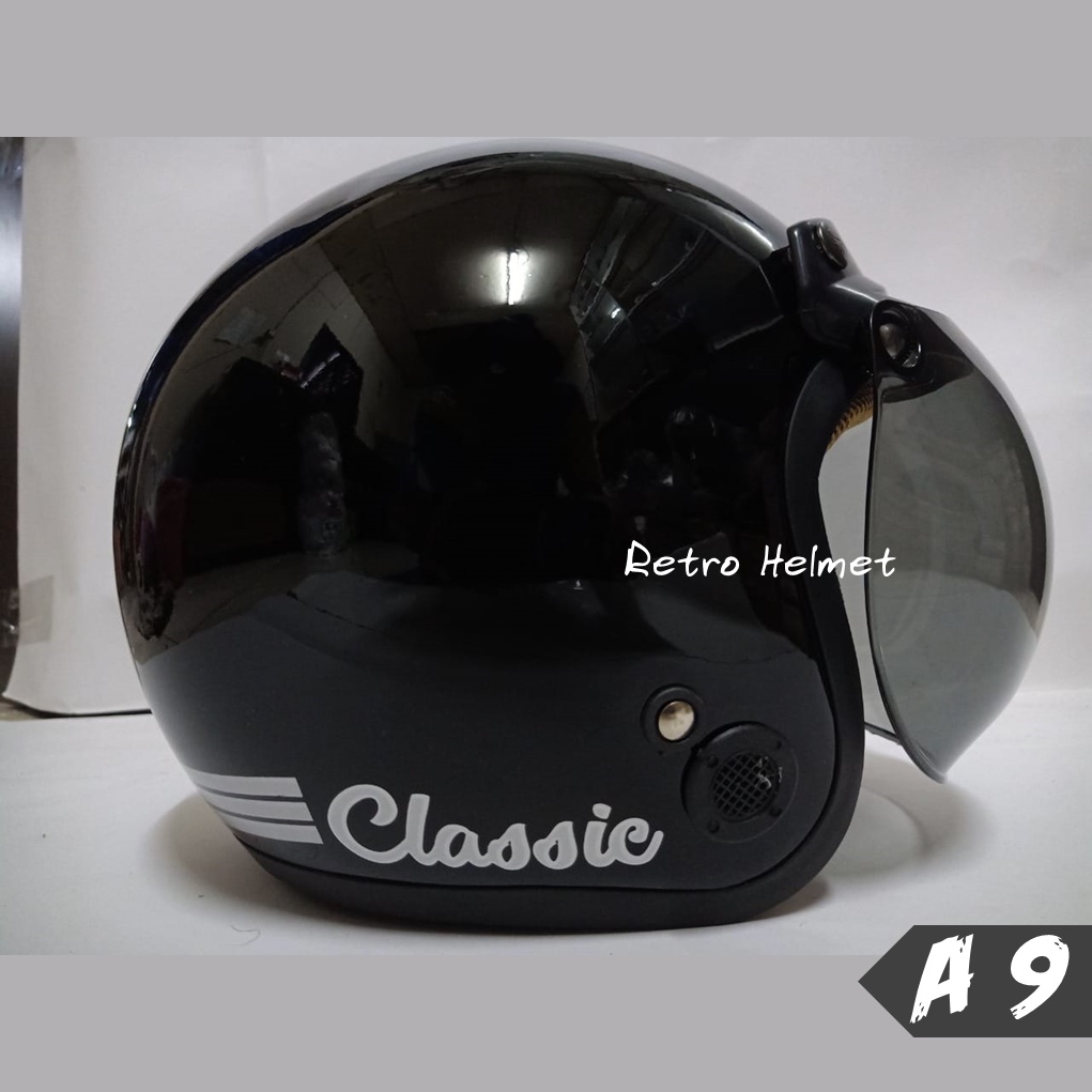 Helm Bogo Dewasa Wanita Pria Motor Sni Helem Retro Classic Cod Hitam