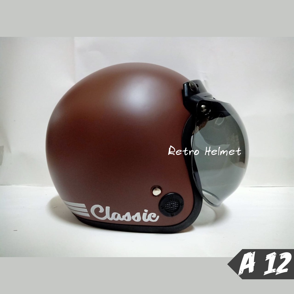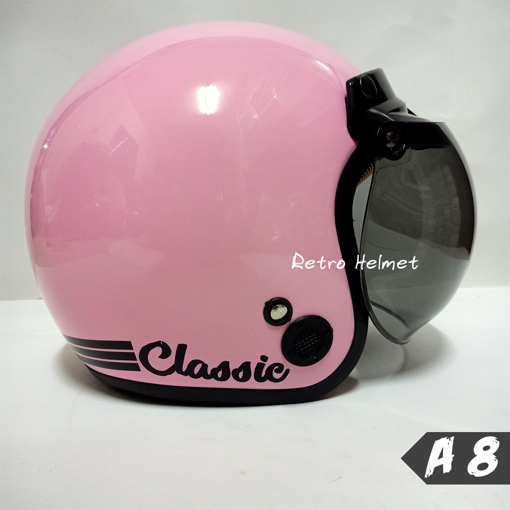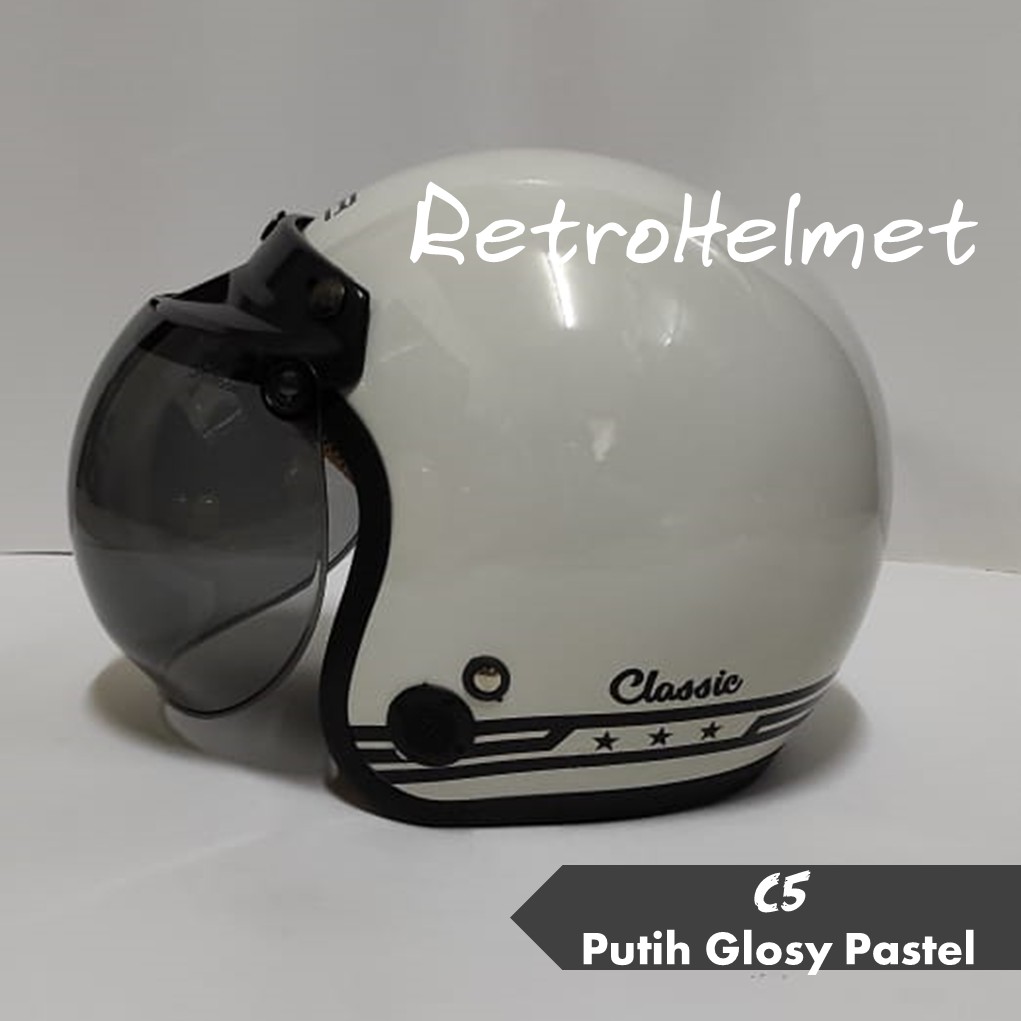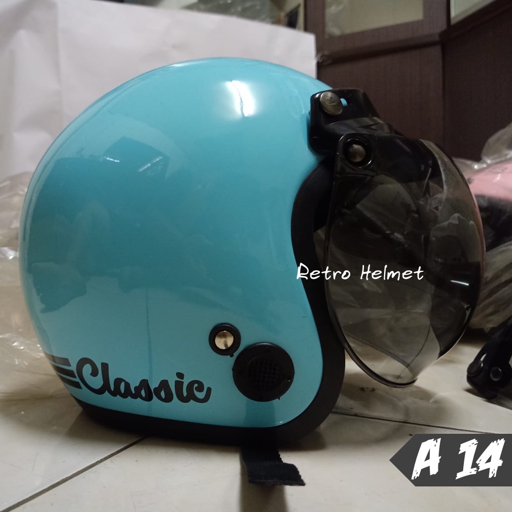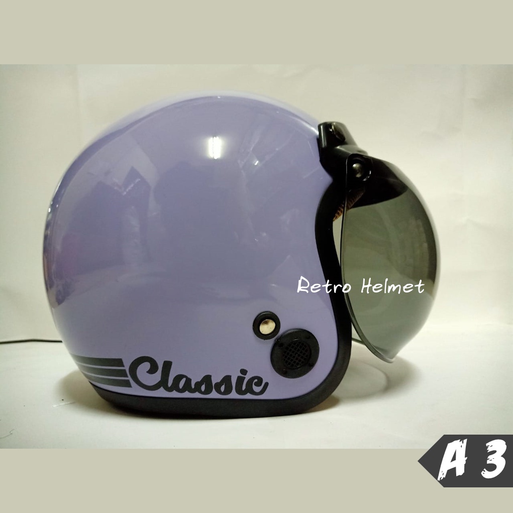 helm bogo dewasa wanita cewek kaca datar cembung scoopy classic clasic kalsik retro full leher motif original sni hijab
