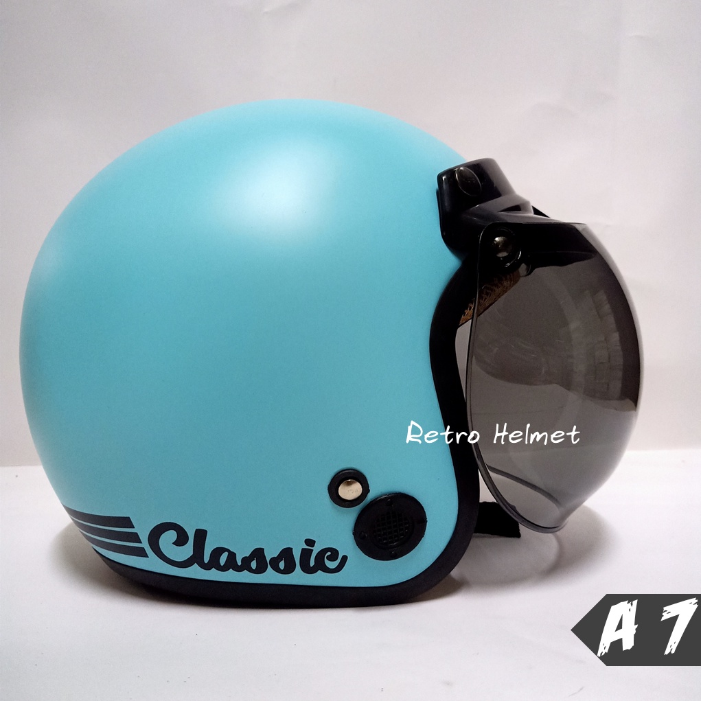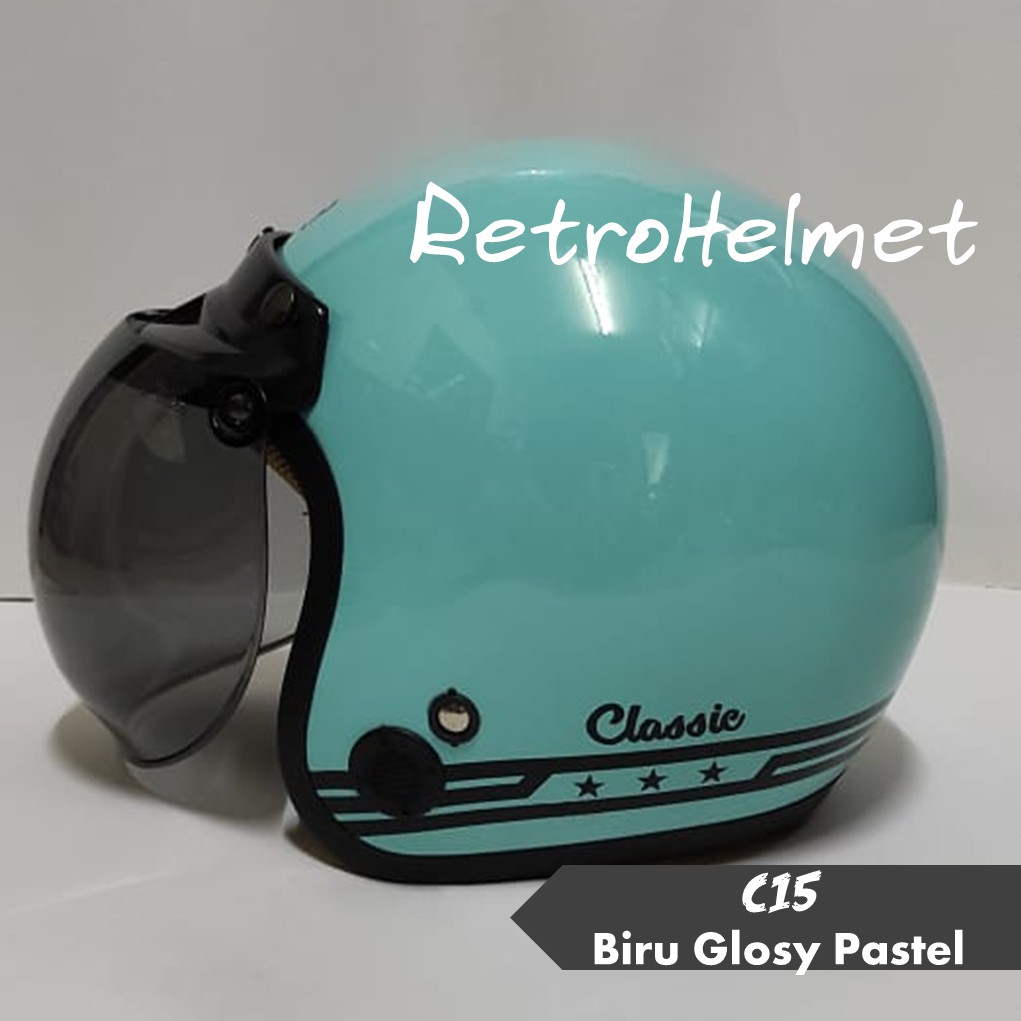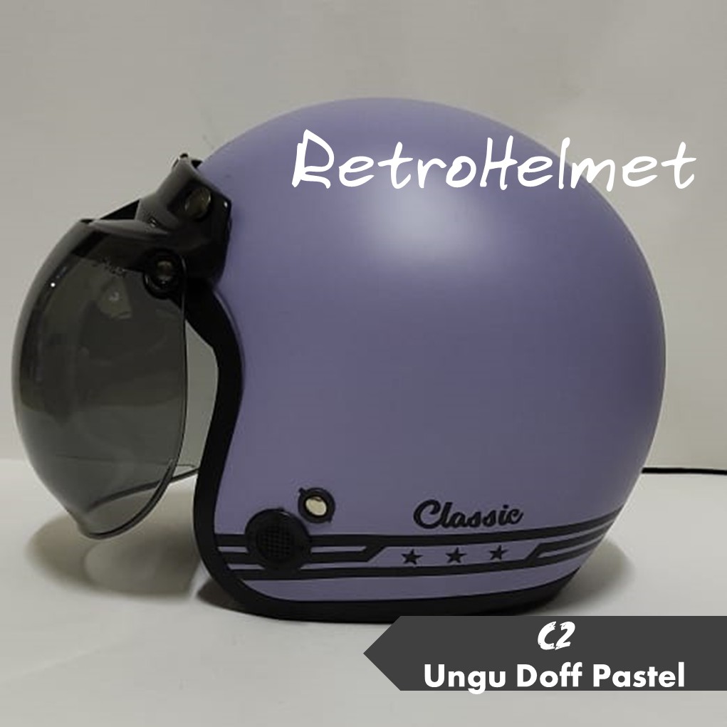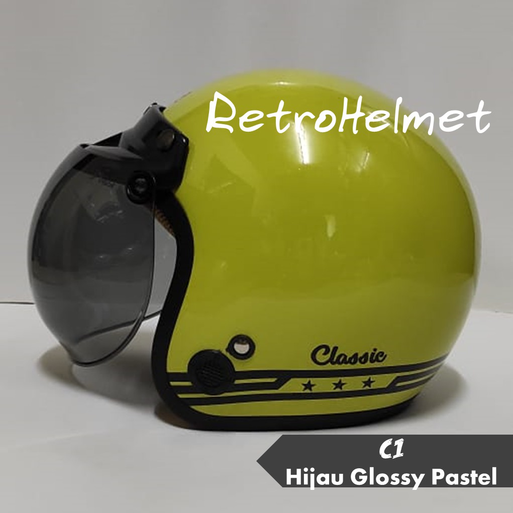 helm bogo dewasa wanita cewek kaca datar cembung scoopy classic clasic kalsik retro full leher motif original sni hijab