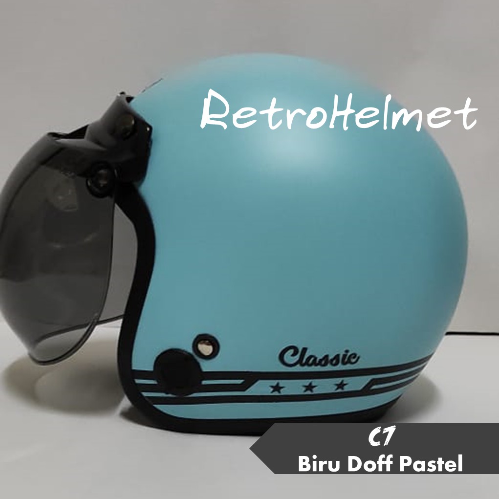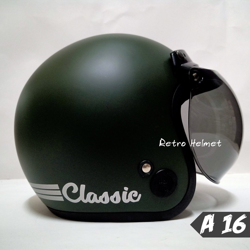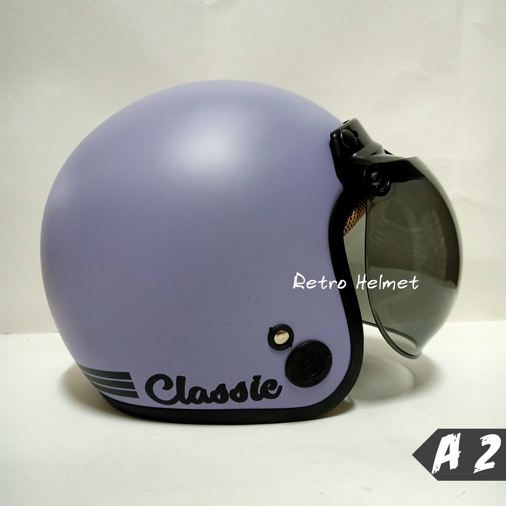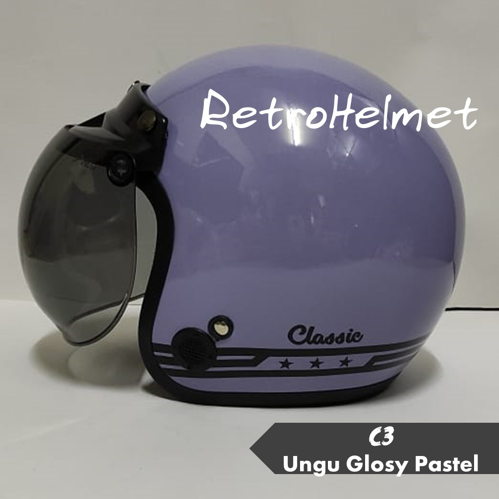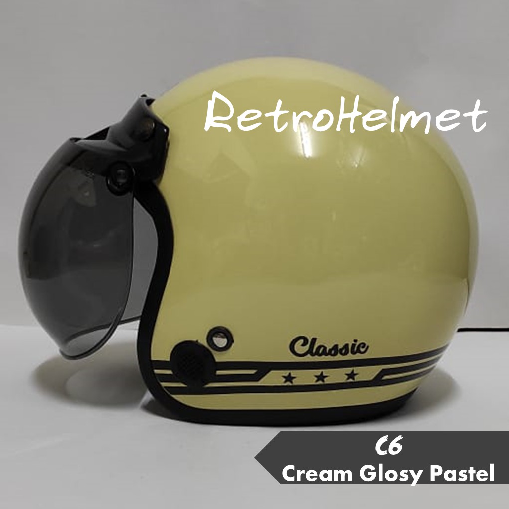 helm bogo dewasa wanita cewek kaca datar cembung scoopy classic clasic kalsik retro full leher motif original sni hijab