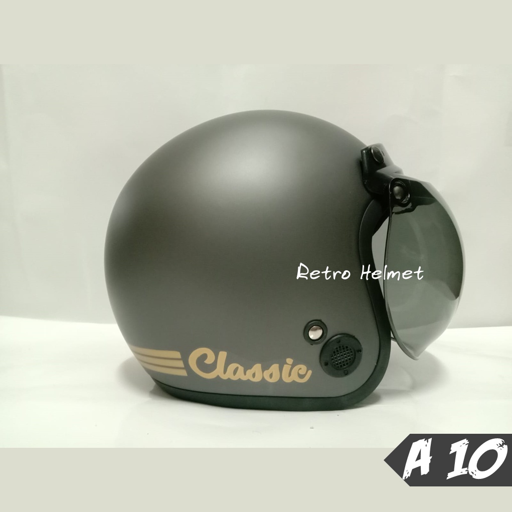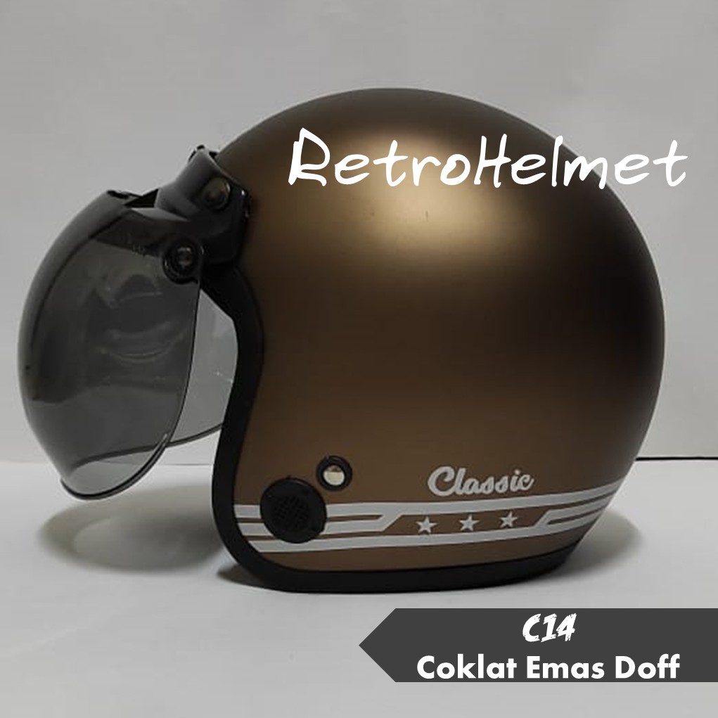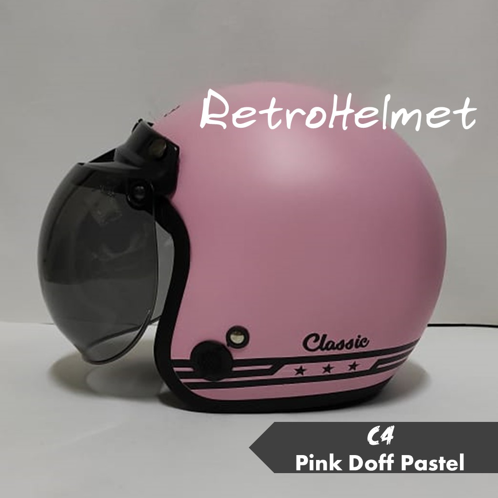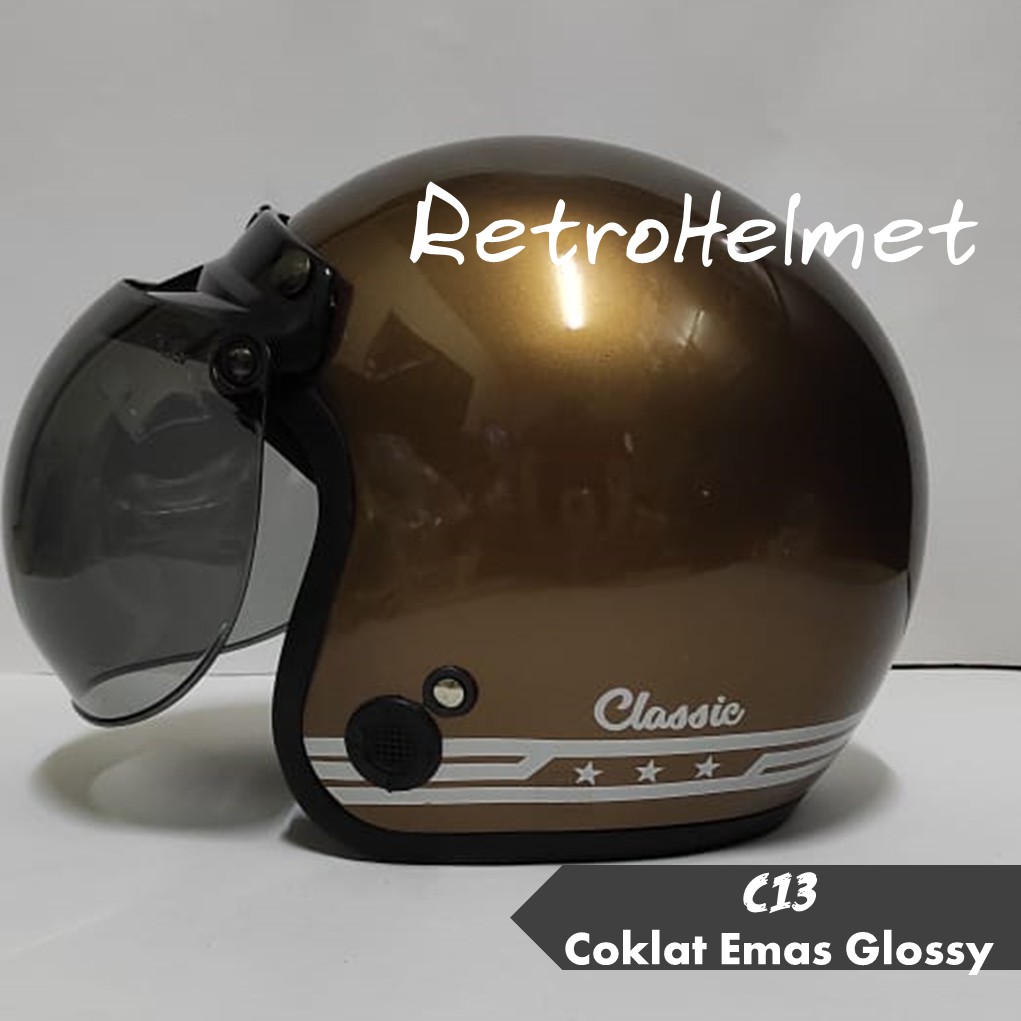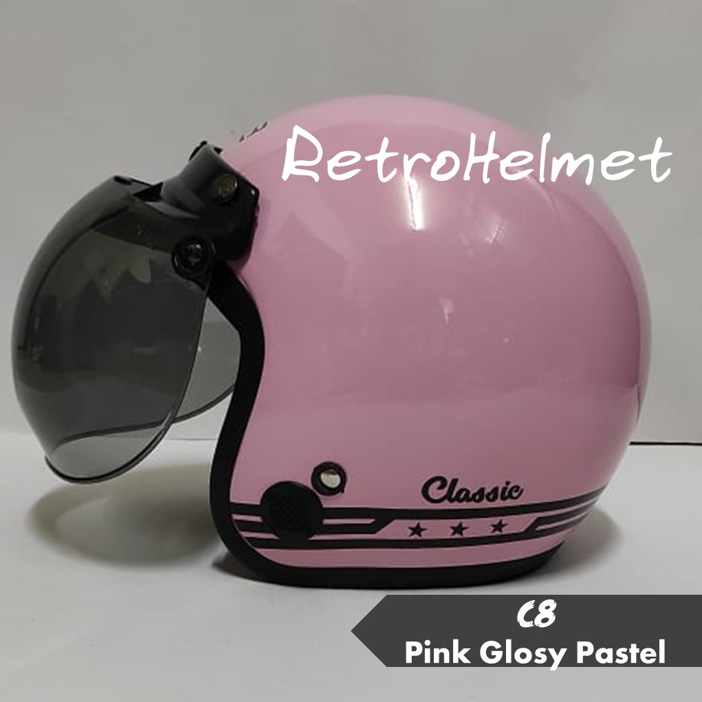 helm bogo dewasa wanita cewek kaca datar cembung scoopy classic clasic kalsik retro full leher motif original sni hijab