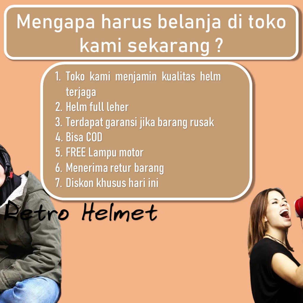 Kelebihan - Kelebihan membeli helm bogo dewasa wanita cewek kaca datar cembung scoopy classic clasic kalsik retro full leher motif original sni hijab di Toko ini