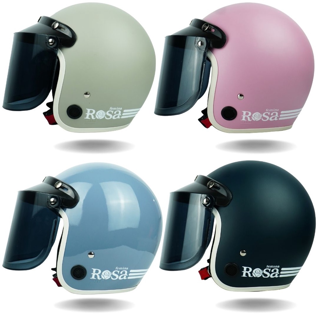 Helm Bogo Dewasa Wanita Kaca Datar Classic Pastel Hijab Retro Polos