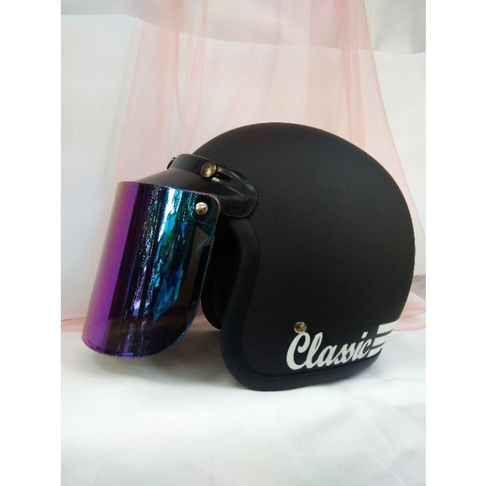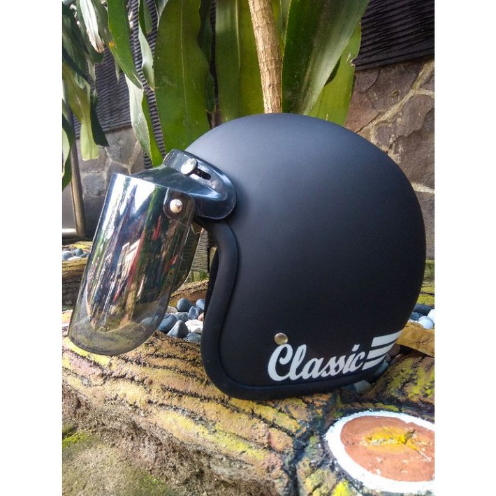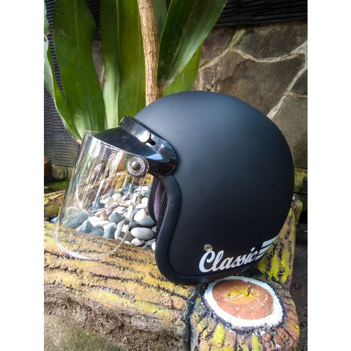 Kelebihan - Kelebihan membeli HELM BOGO DEWASA WANITA PRIA CLASSIC RETRO KACA DATAR CEMBUNG SNI TERBARU Hitam Doff di Toko ini