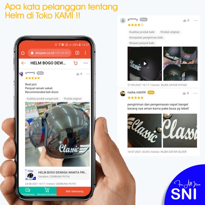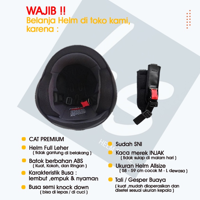 - Produk ini tidak sedang Flash Sale, tidak semua Seller suka Flash Sale, saya rasa ini bukan kekurangan, Jika Anda anggap Harga Rp. 55.000,00 itu murah untuk HELM BOGO DEWASA WANITA PRIA CLASSIC RETRO KACA DATAR CEMBUNG SNI TERBARU Hitam Doff ya ambil saja