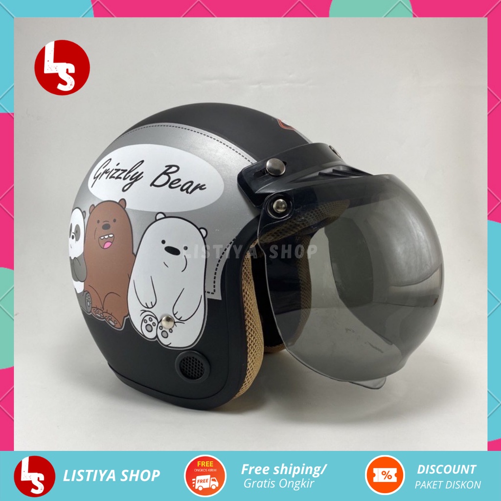 Helm Bogo Dewasa Wanita Retro Classic Motif Wanita Cowok Cewek Perempuan Karakter Kaca Cembung SNI