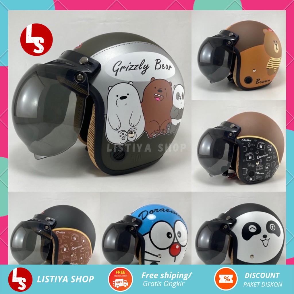 Kelebihan - Kelebihan membeli Helm Bogo Dewasa Wanita Retro Classic Motif Wanita Cowok Cewek Perempuan Karakter Kaca Cembung SNI di Toko ini