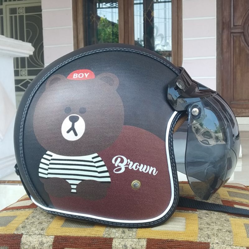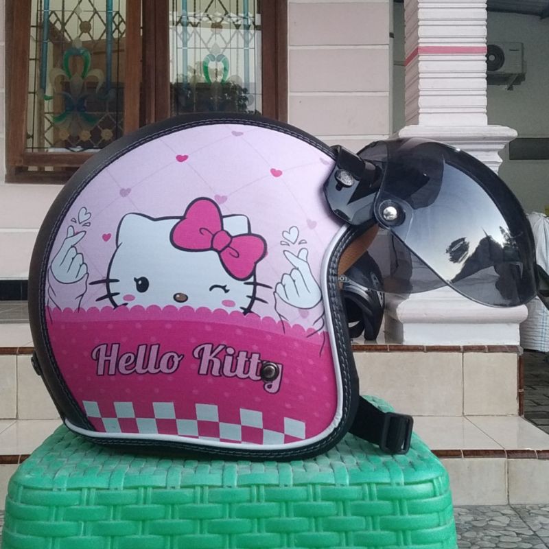 Helm Bogo Wanita Pria Dewasa Kaca Datar Cembung SNI Karakter Full Leher Pria Perempuan Murah