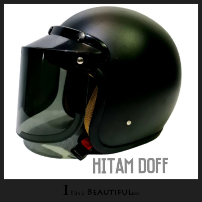 Helm Bogo Dewasa Wanita Pria Cewek Cowok Motor Sni Helem Retro Klasic Classic Cod Warna Hitam Doff