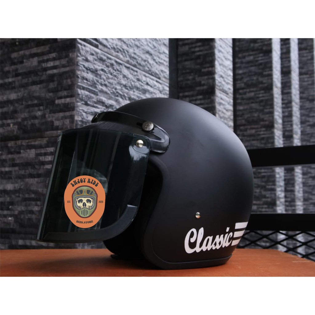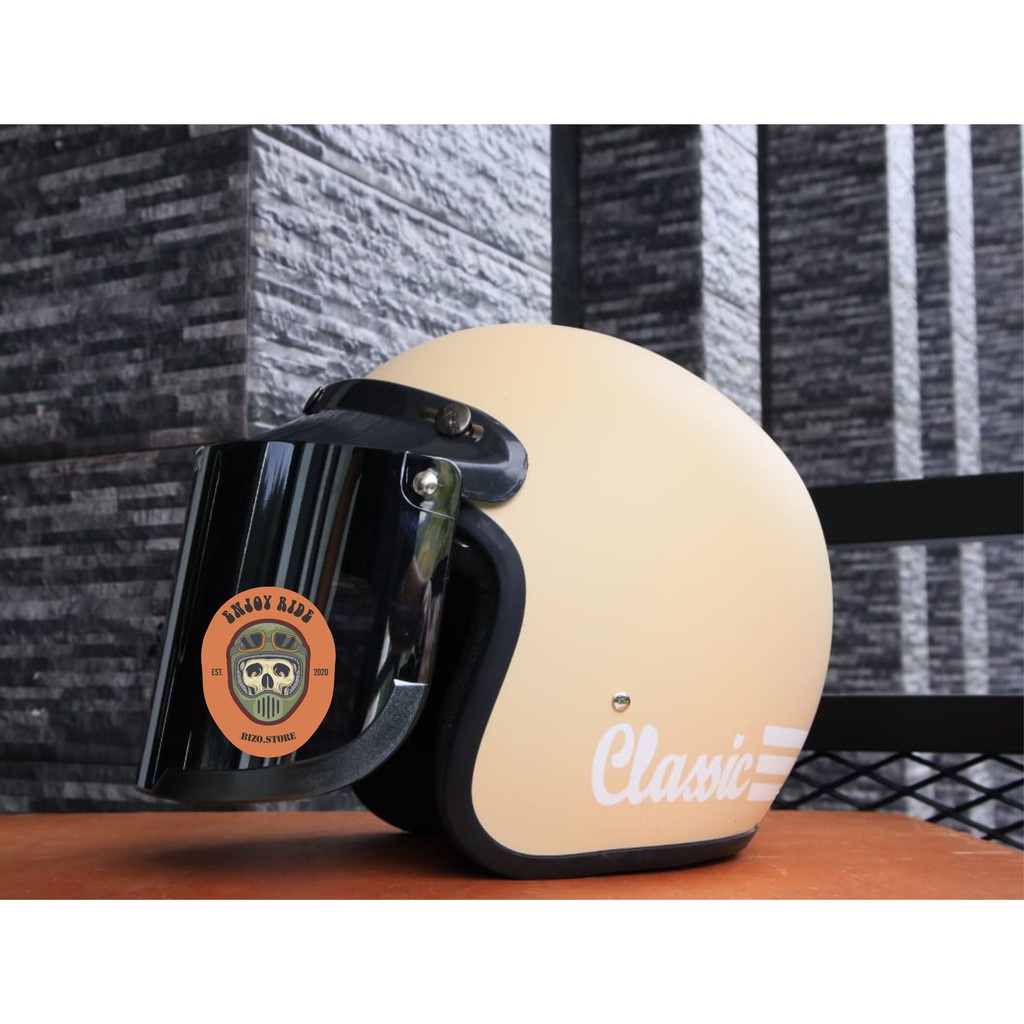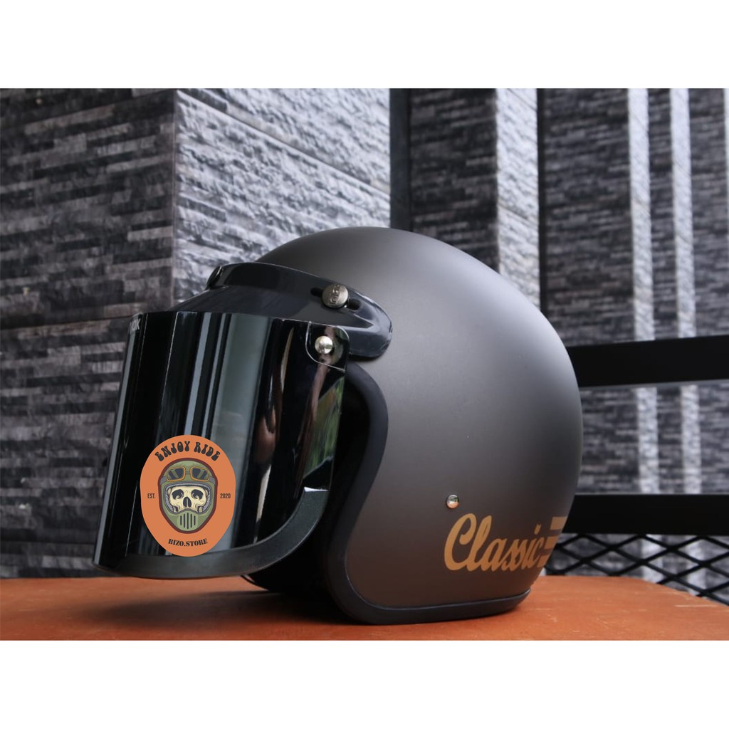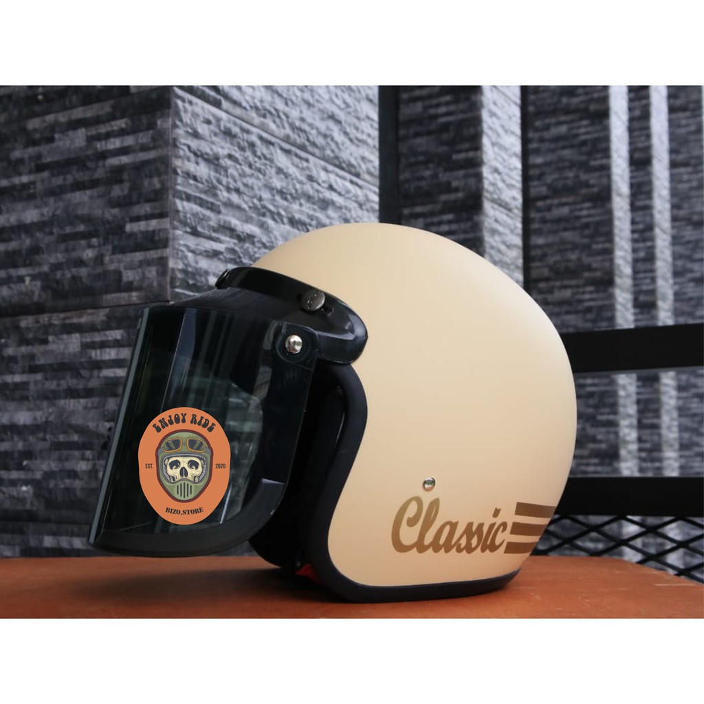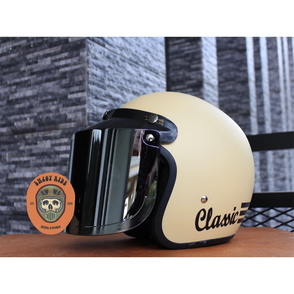 Helm Bogo garis classic kaca datar flat injak free packing bubble