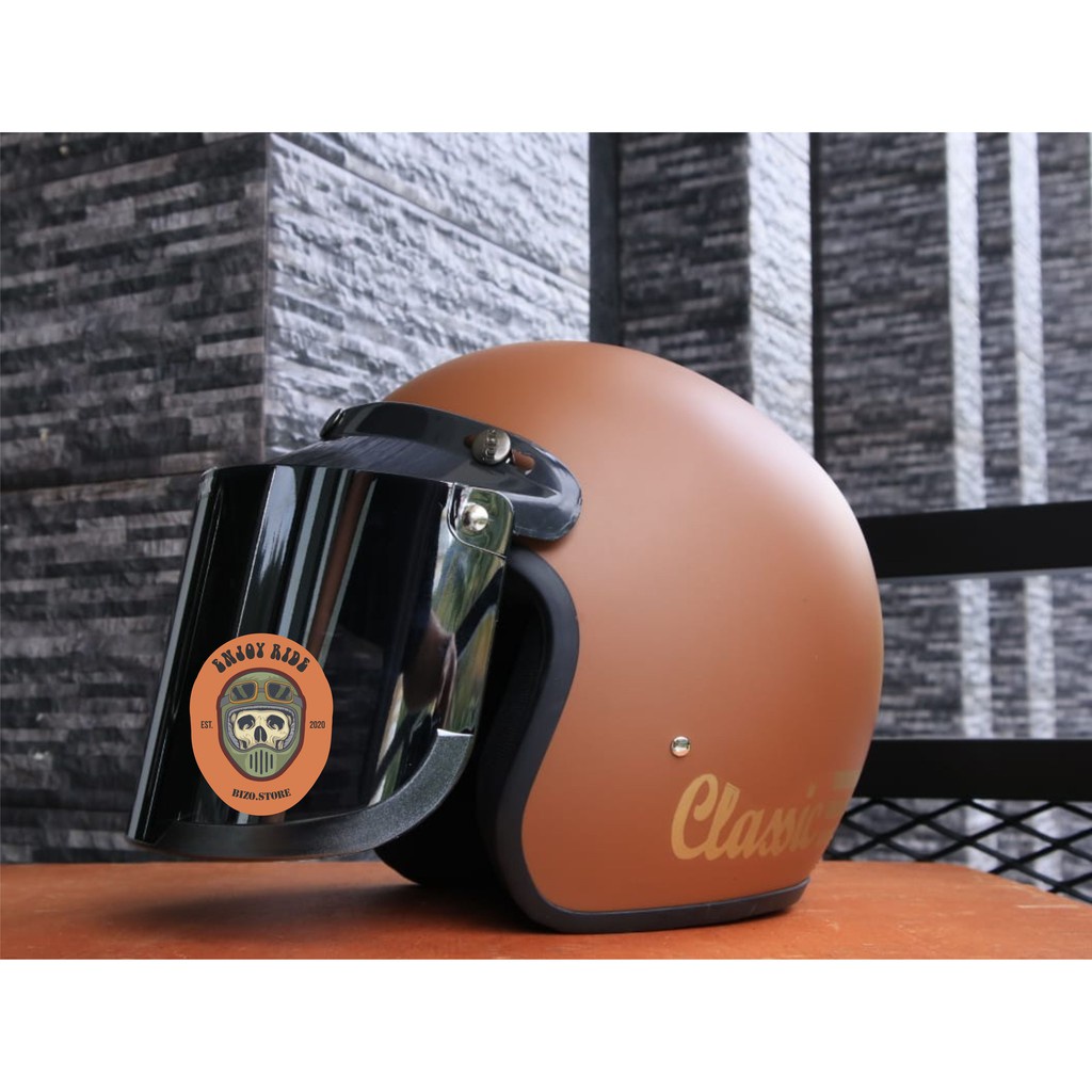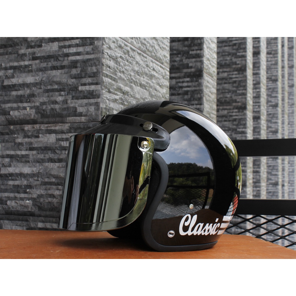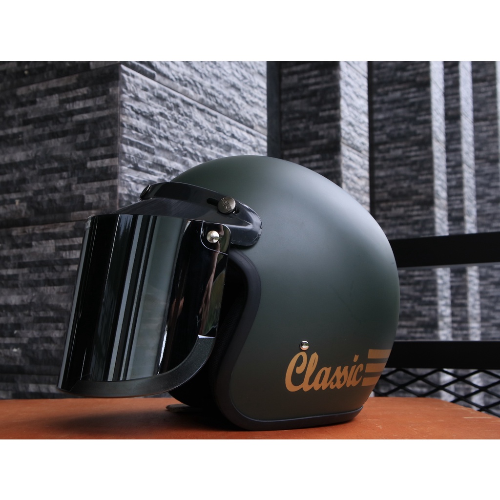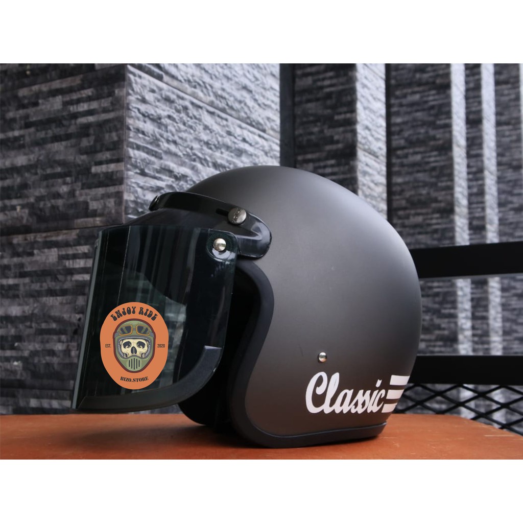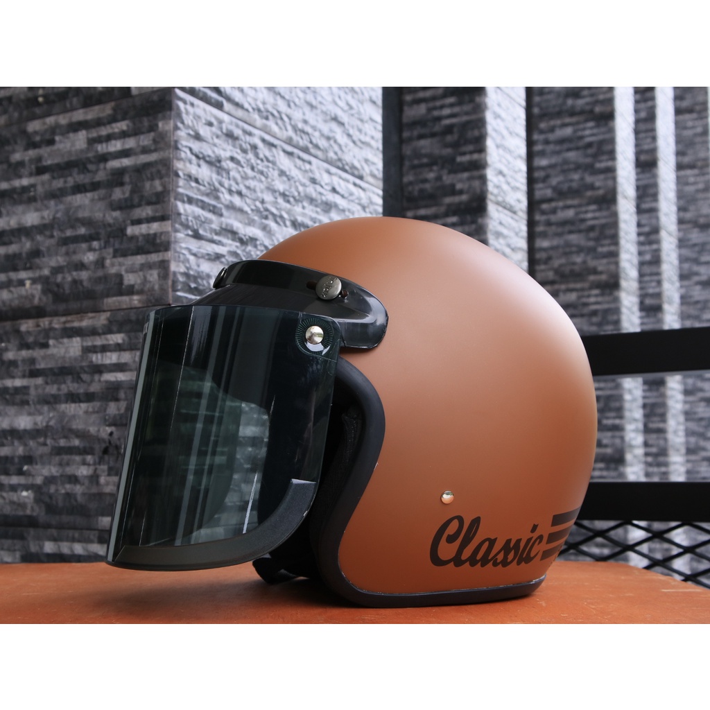 Helm Bogo garis classic kaca datar flat injak free packing bubble