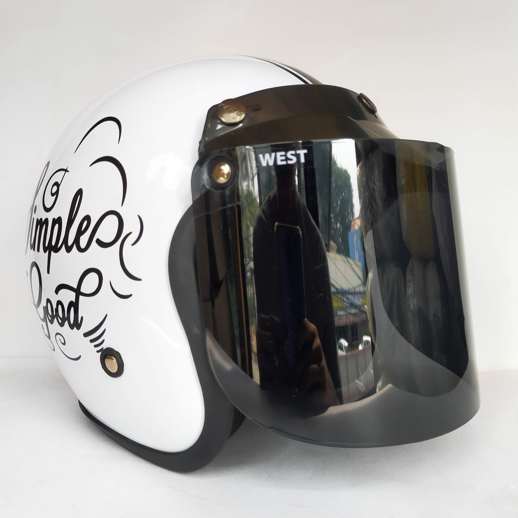 HELM BOGO HELM BOGO RETRO MOTIF SIMPLE GOOD EVERYBODY KACA DATAR UNTUK PRIA DAN WANITA DEWASA COD