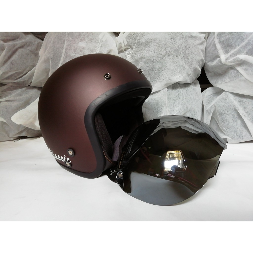 HELM BOGO RETRO CLASSIC DEWASA COKLAT DOFF CEMBUNG SILVER