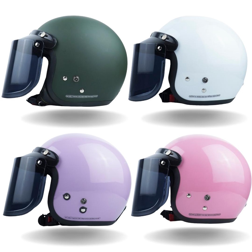 Helm Bogo Classic Retro Kaca Bening Clear Warna Wanita Cewek Polos