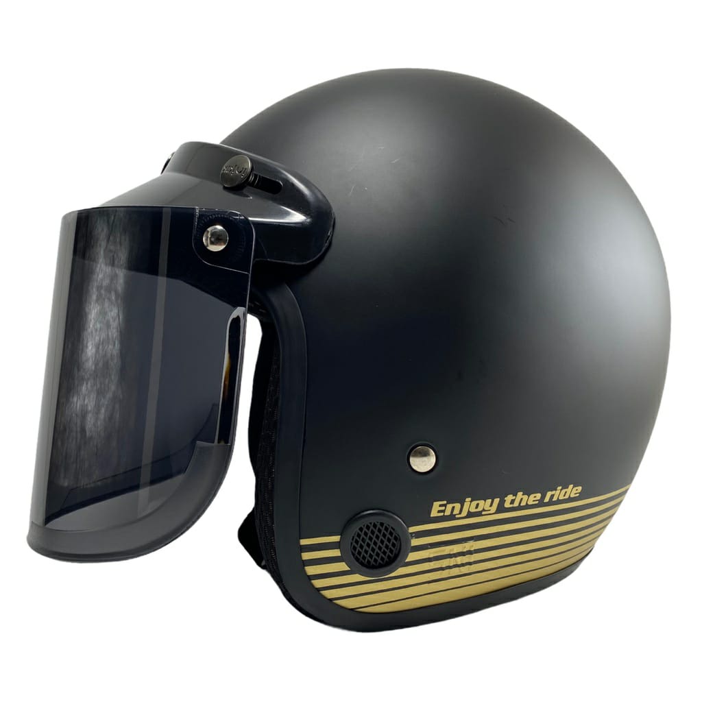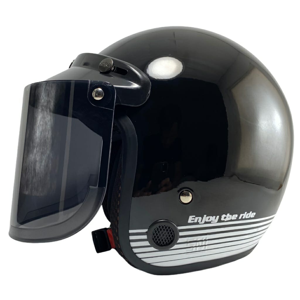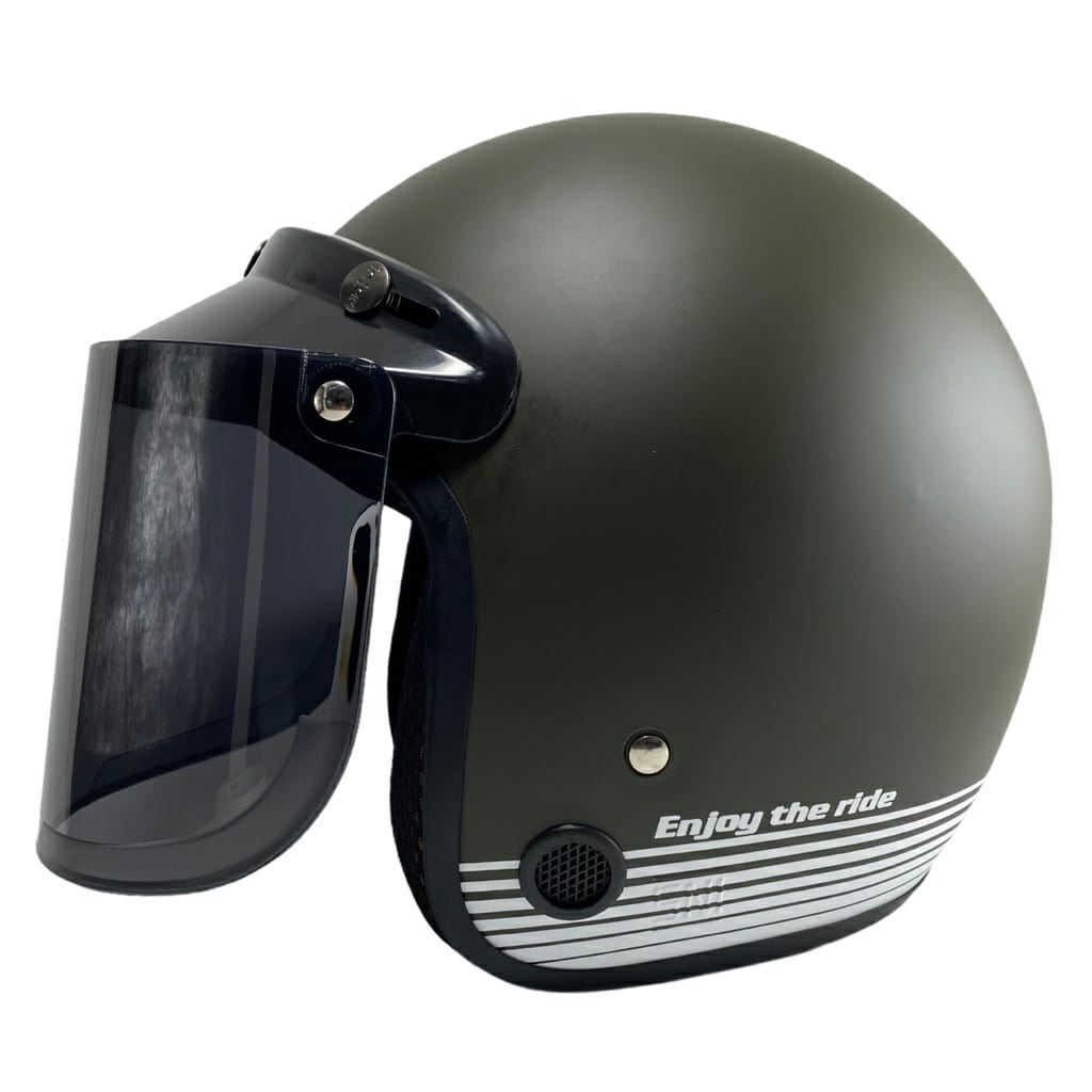 HELM JPN Gunmetal D0ff HELMET MOTOR BOGO RETRO POLOS PRIA WANITA PAKET KACA