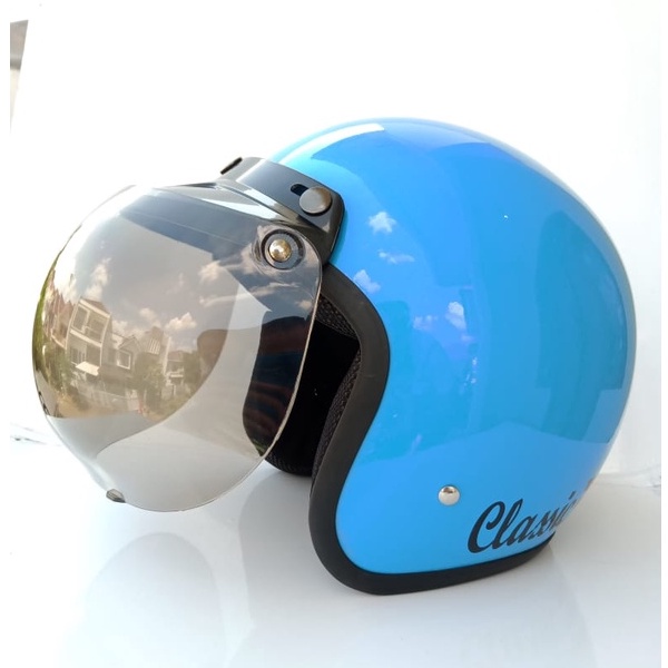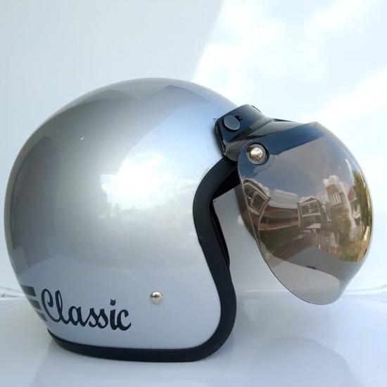 HELM BOGO RETRO DEWASA SNI PRIA WANITA KACA CEMBUNG DATAR FLAT SILVER PELANGI SMOK HITAM GOOGLE