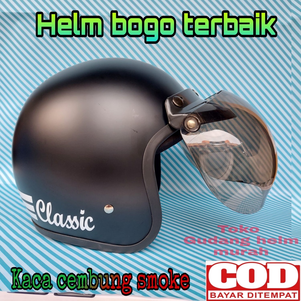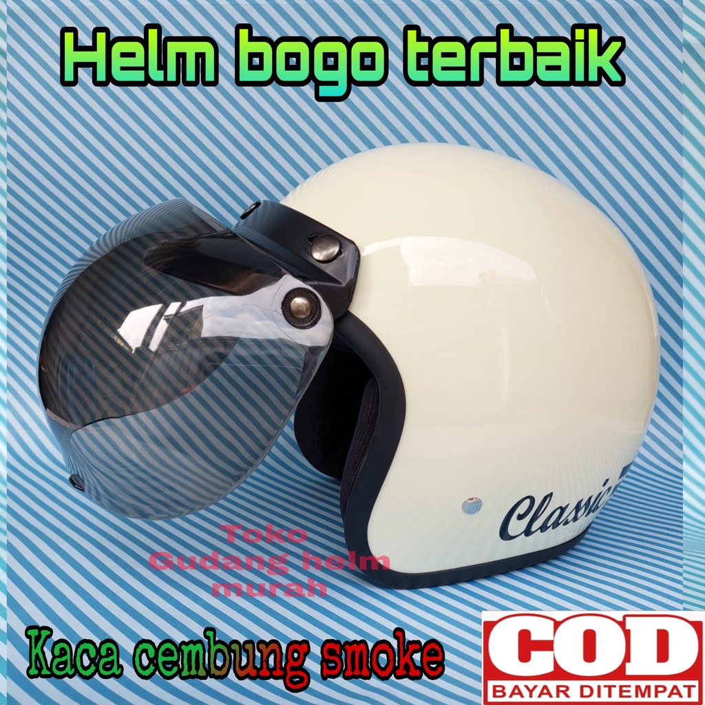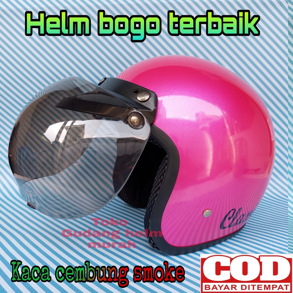 Helm Bogo Wanita Cantik Dewasa Polos Classic Kekinian Motor Sni Helem Retro Kaca Datar Bening
