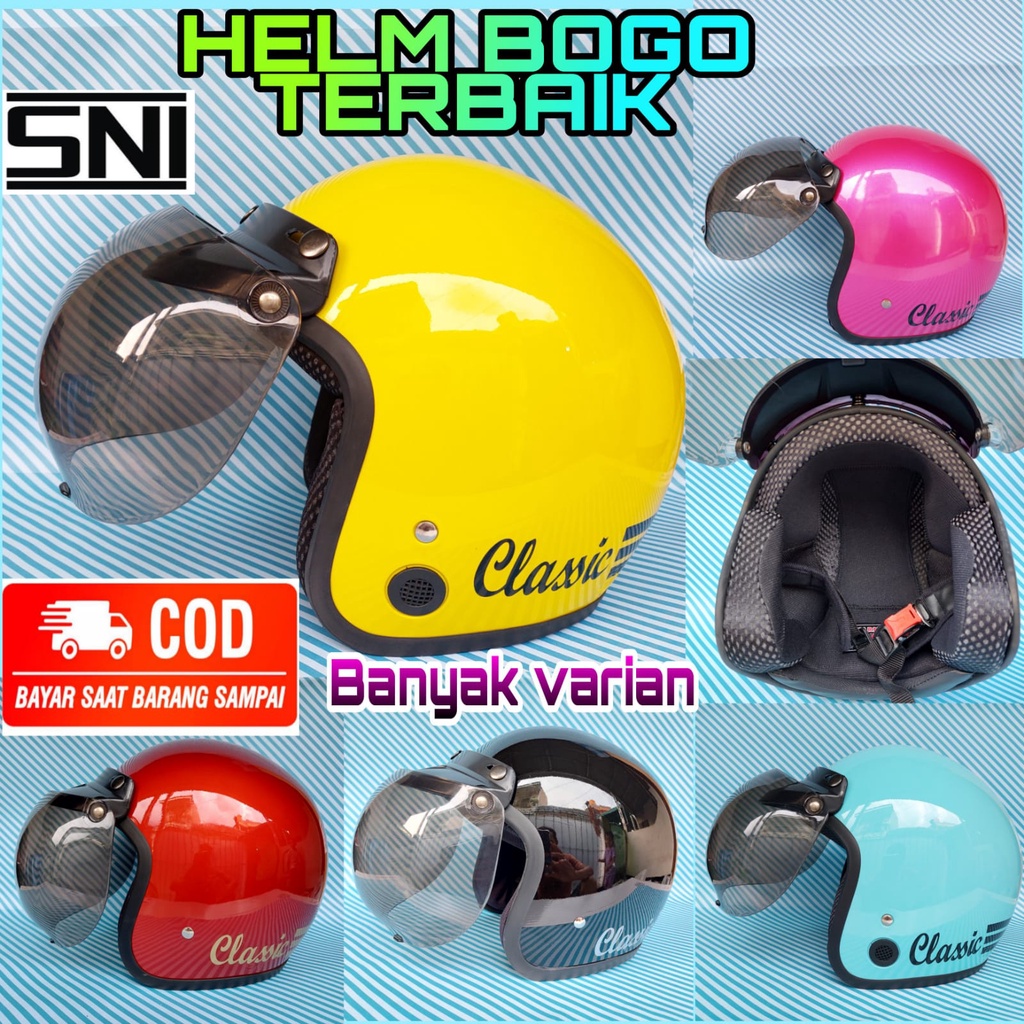 Helm Bogo Retro Dewasa Pria Wanita Polos Garis SNI Terbaru