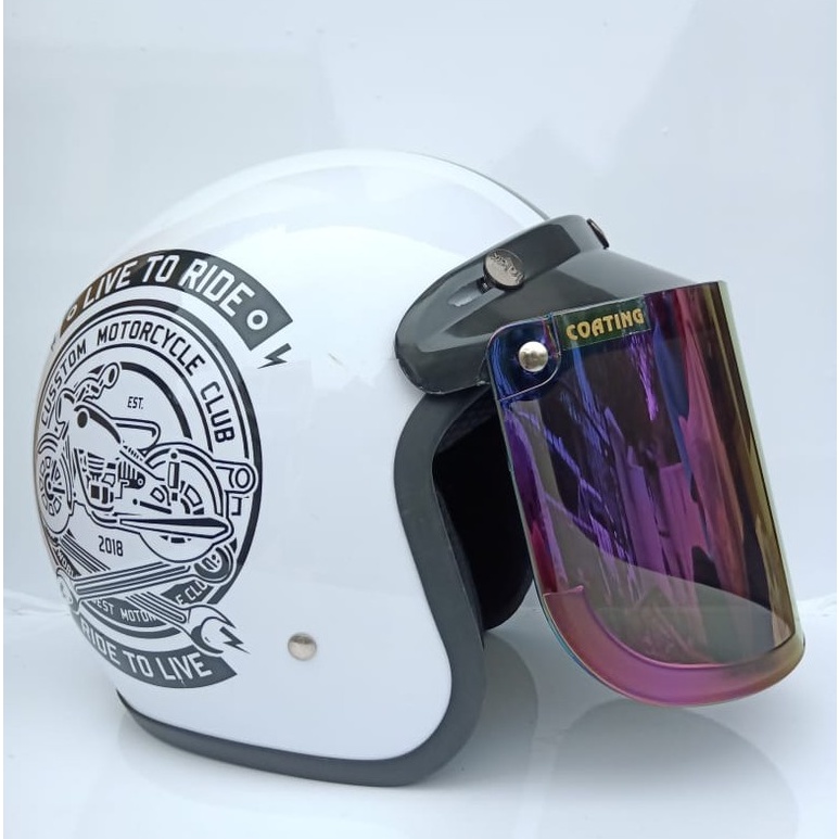 Helm Bogo Dewasa SNI Kaca Retro Pria Wanita Classic Viral Cantik