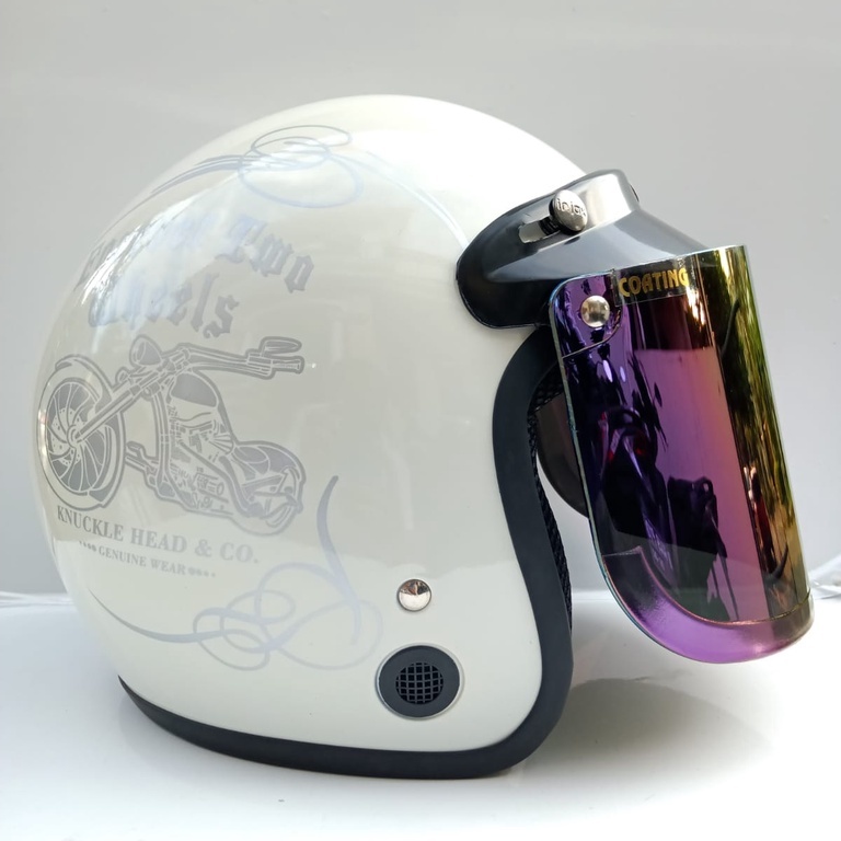 Kekurangan - Kekurangan membeli HELM BOGO RETRO DEWASA SNI PRIA WANITA KACA CEMBUNG DATAR FLAT SILVER PELANGI SMOK HITAM GOOGLE di Toko ini