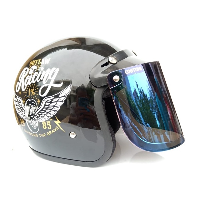 Kelebihan - Kelebihan membeli HELM BOGO RETRO DEWASA SNI PRIA WANITA KACA CEMBUNG DATAR FLAT SILVER PELANGI SMOK HITAM GOOGLE di Toko ini