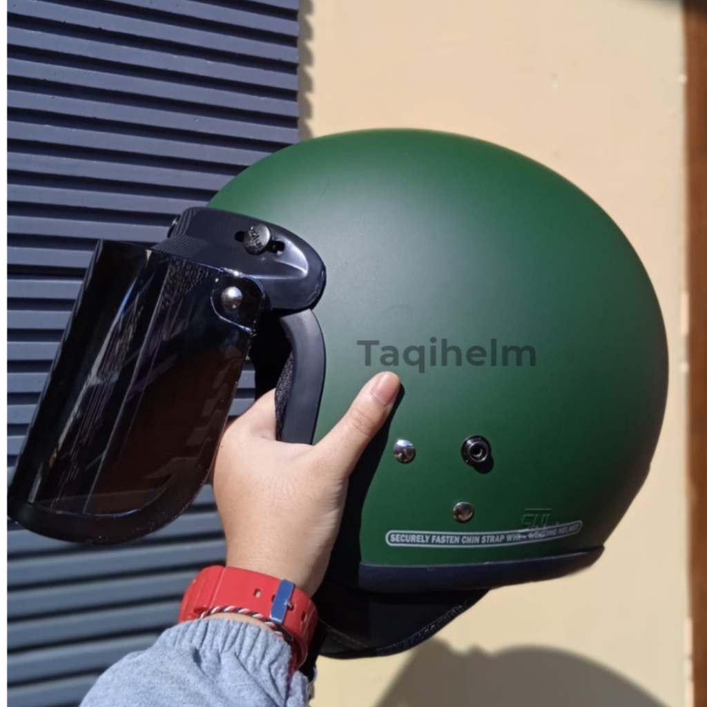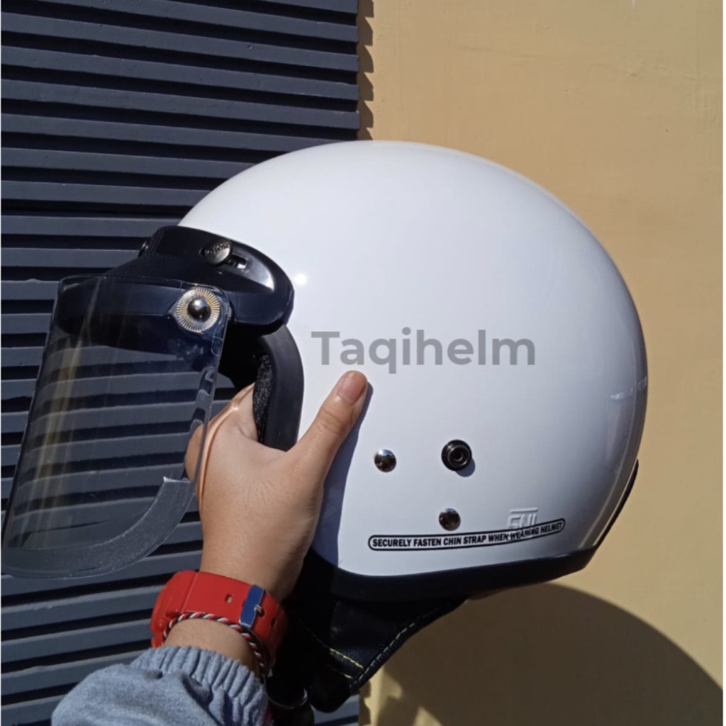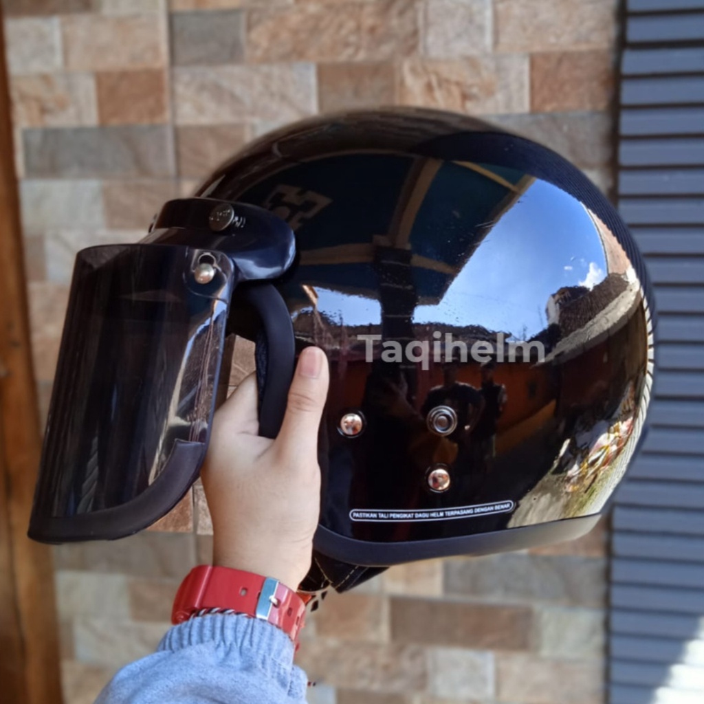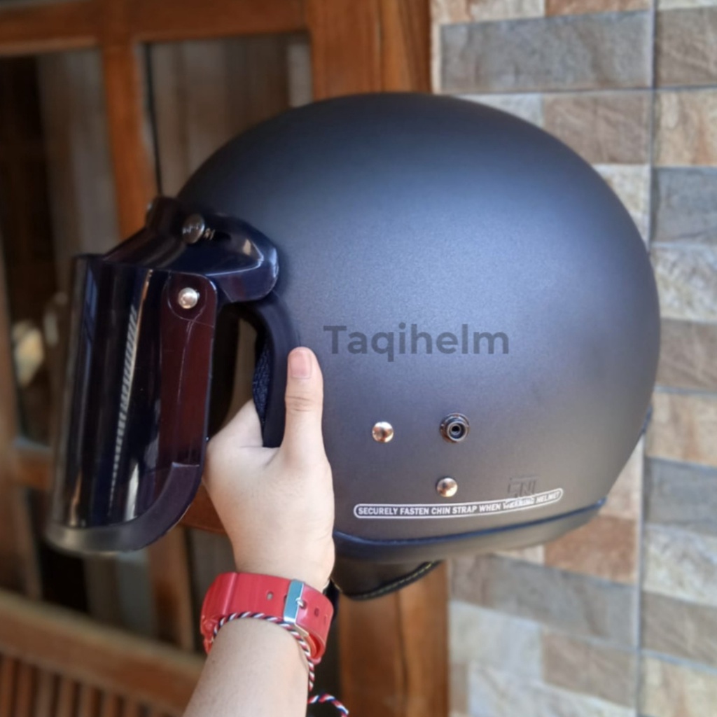 HELM BOGO HELM BOGO RETRO MOTIF SIMPLE GOOD EVERYBODY KACA DATAR UNTUK PRIA DAN WANITA DEWASA COD