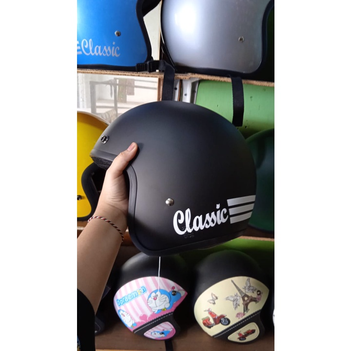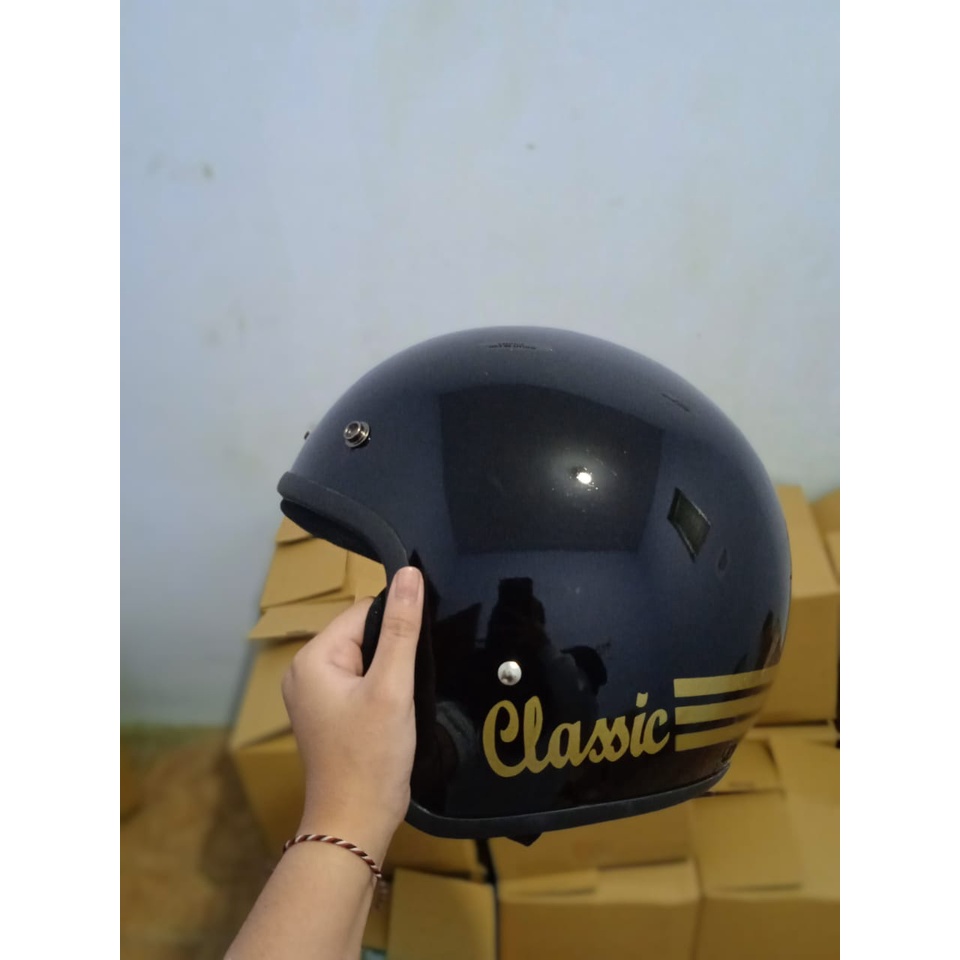 Helm Bogo Dewasa Wanita Pria Retro Classic Clasic Klasik Motor SNI Kaca Datar Motif Polos Full Leher