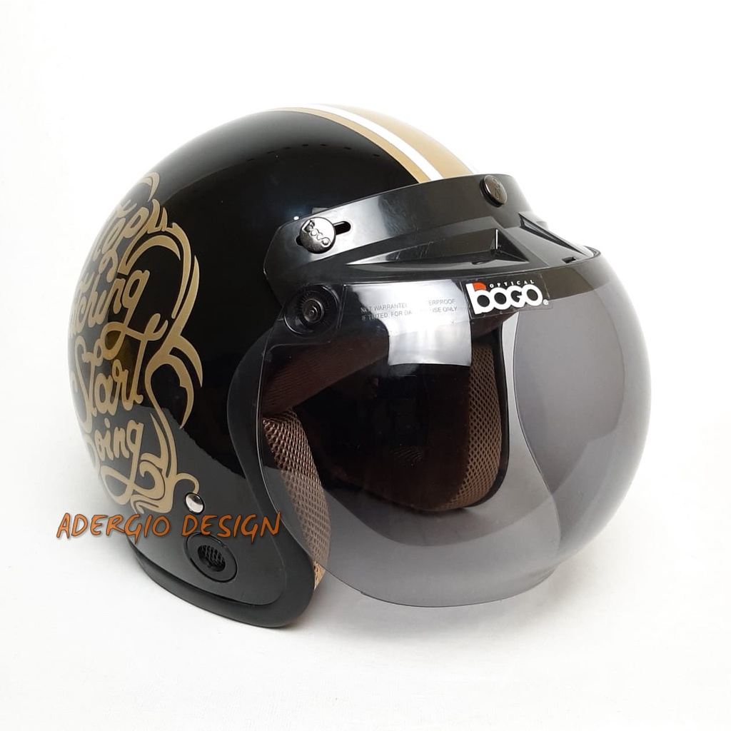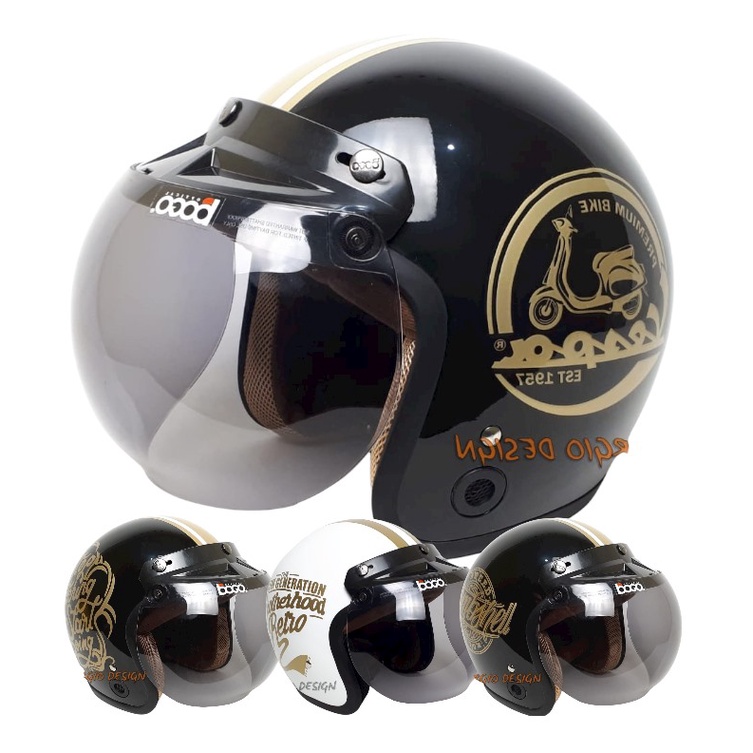 Helm Bogo Retro Kaca Bogo Ori Dewasa SNI FCM Motif Vespa