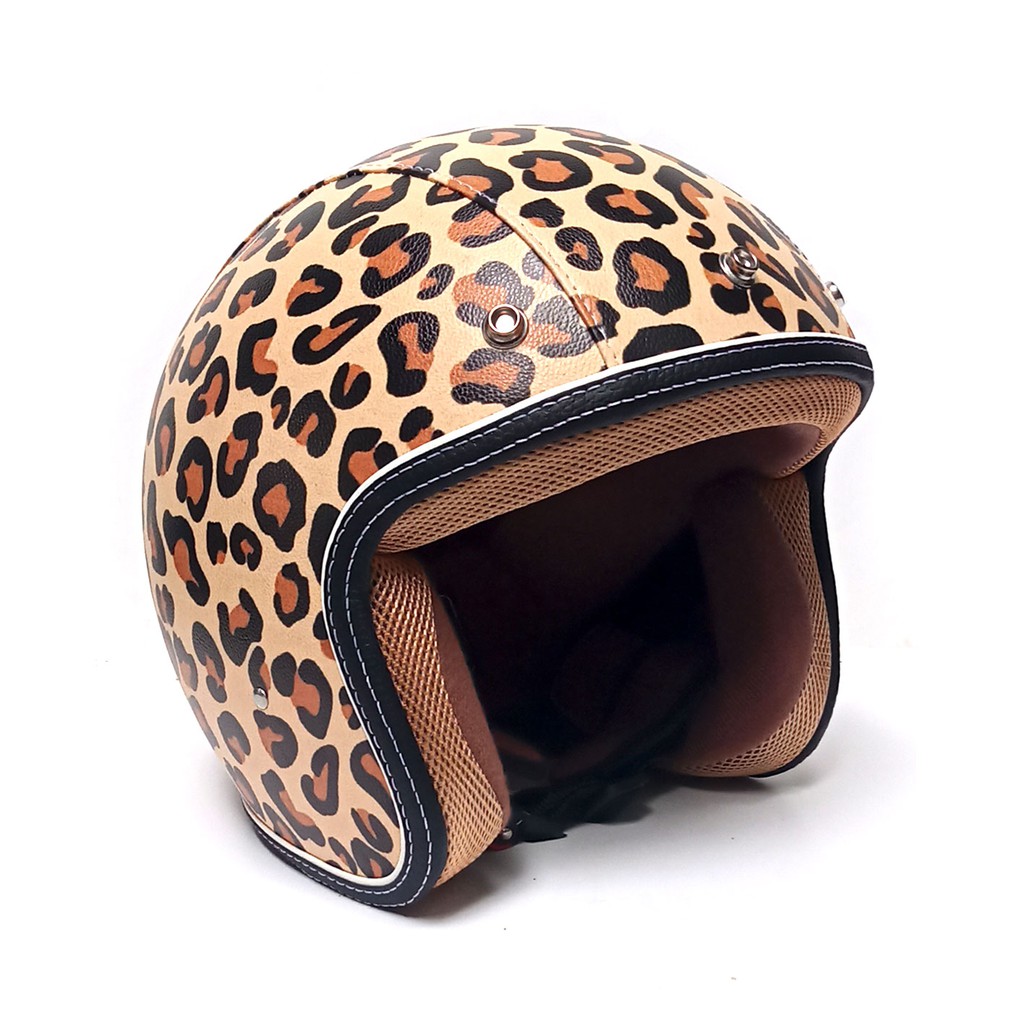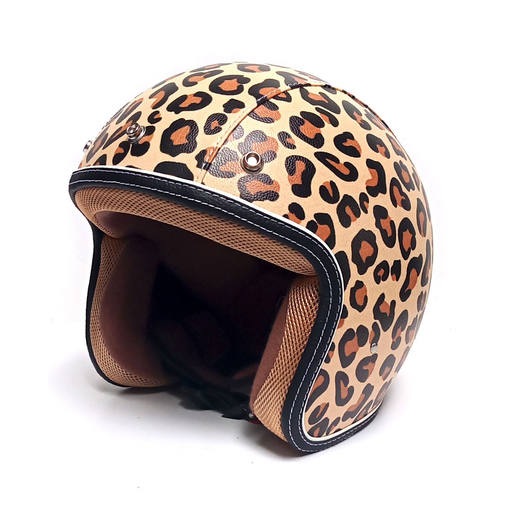 Kekurangan - Kekurangan membeli Helm bogo retro kulit dewasa full leher Dewasa Pria & Wanita Murah Helm Motif Leopard Allsize lingkar kepala 58-61cm di Toko ini