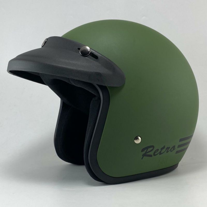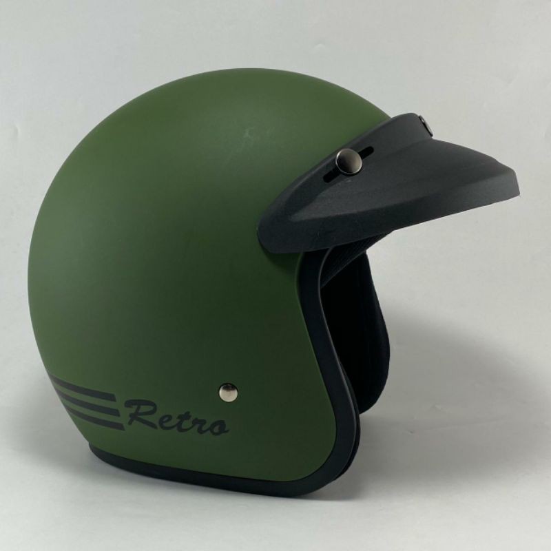 Helm Bogo Retro Model Murah Pria Wanita Cowok Cewek Hijau Army Doff