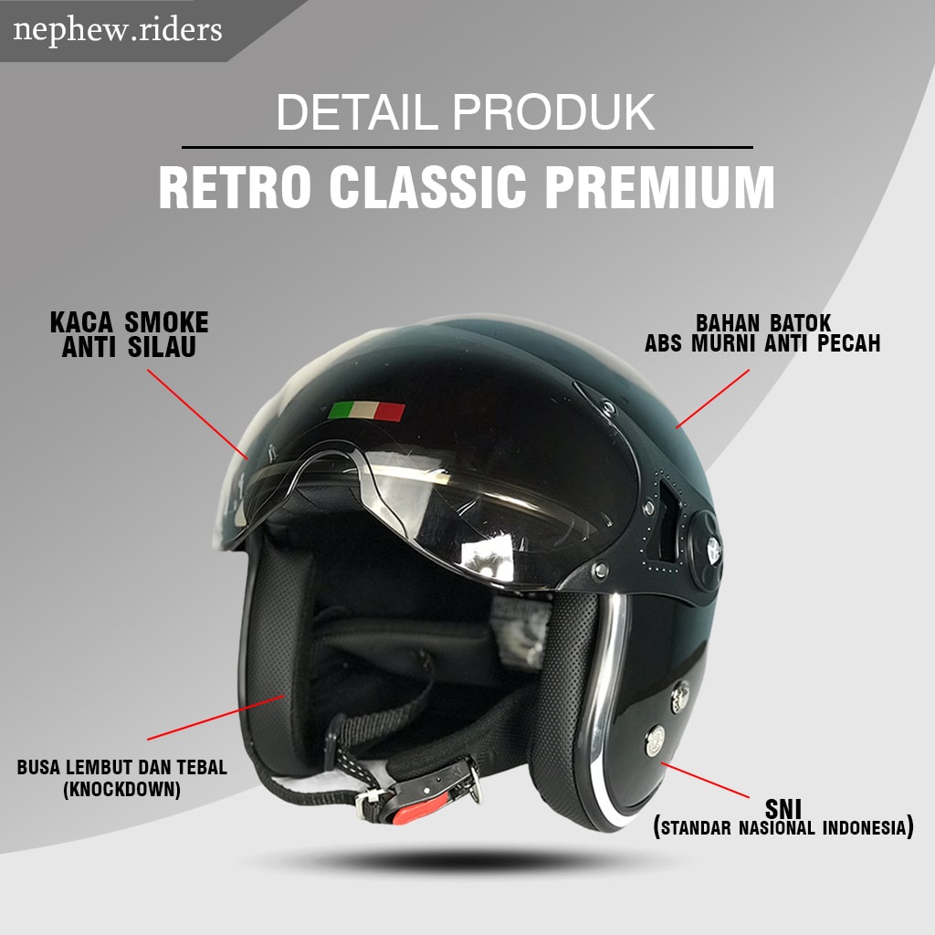 Helm Bogo Dewasa Classic Kaca Datar Flat Retro Klasik Kaca Silver SNI Pria Wanita PHB03
