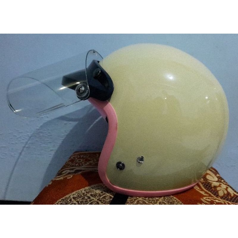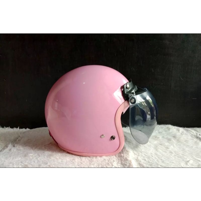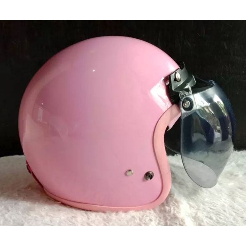 HELM BOGO RETRO WANITA HIJAB DEWASA SNI SADA PINK PASTEL KACA DATAR CEMBUNG