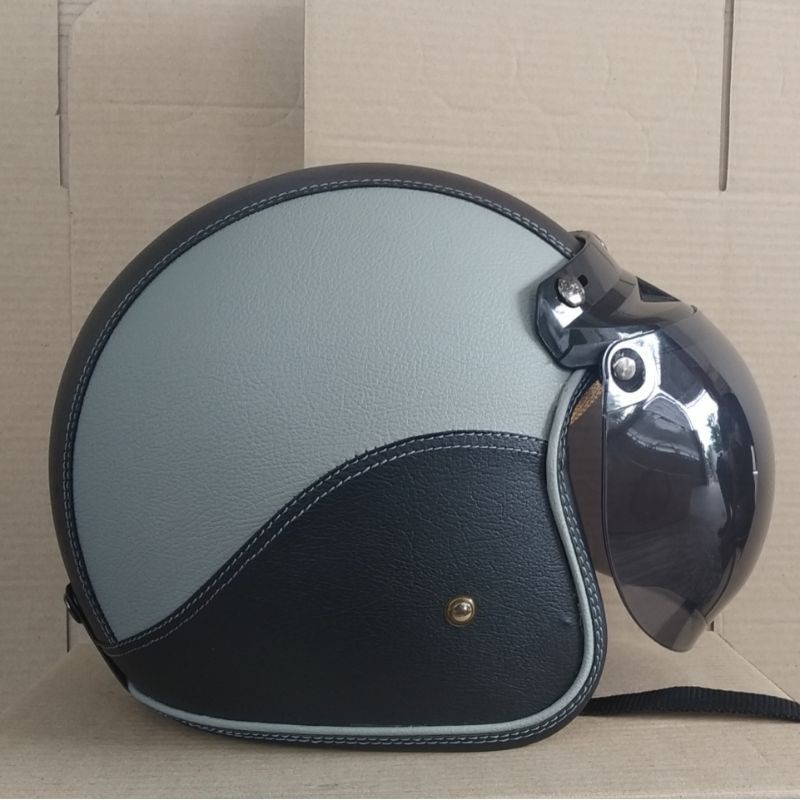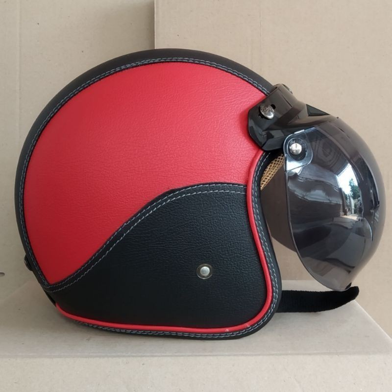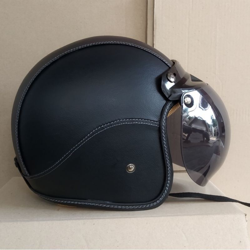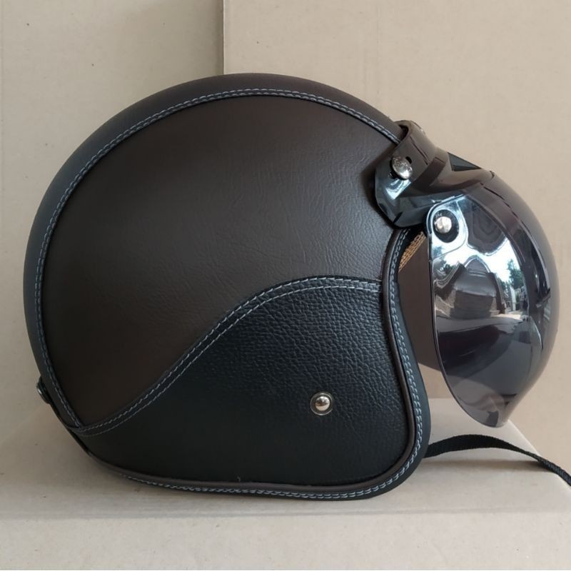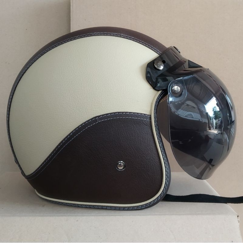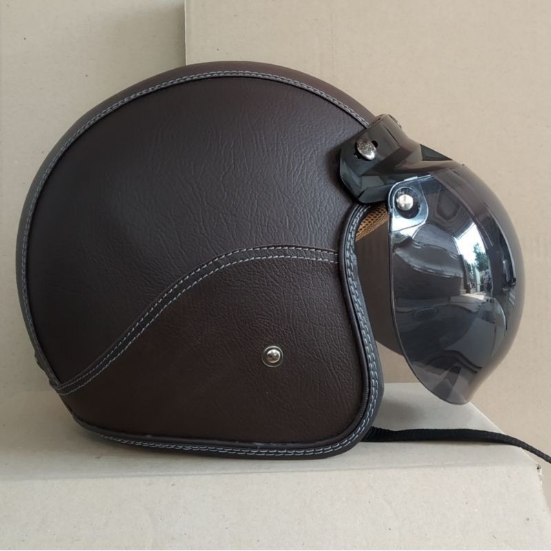 HELM BOGO RETRO WANITA KULIT POLOS FULL LEHER FREE PACKING BOX + FREE BUBBLE WARP