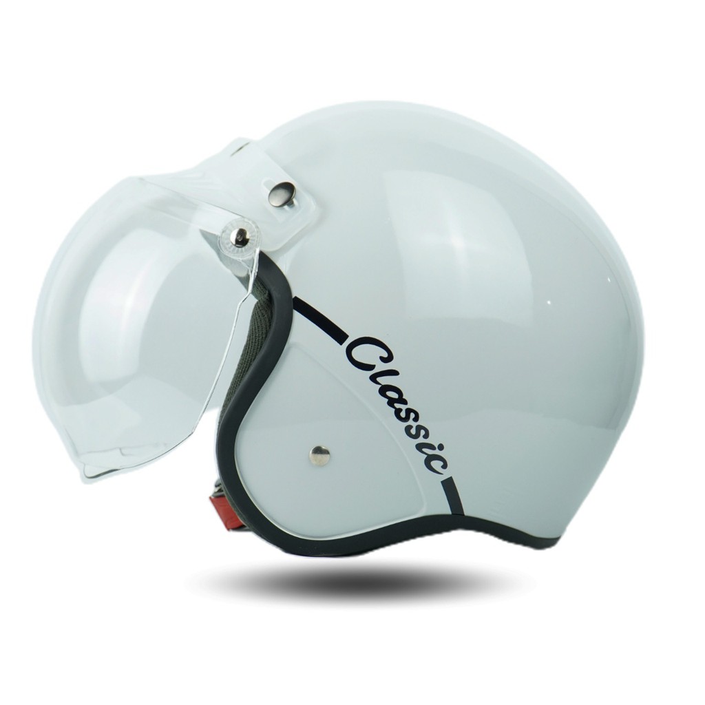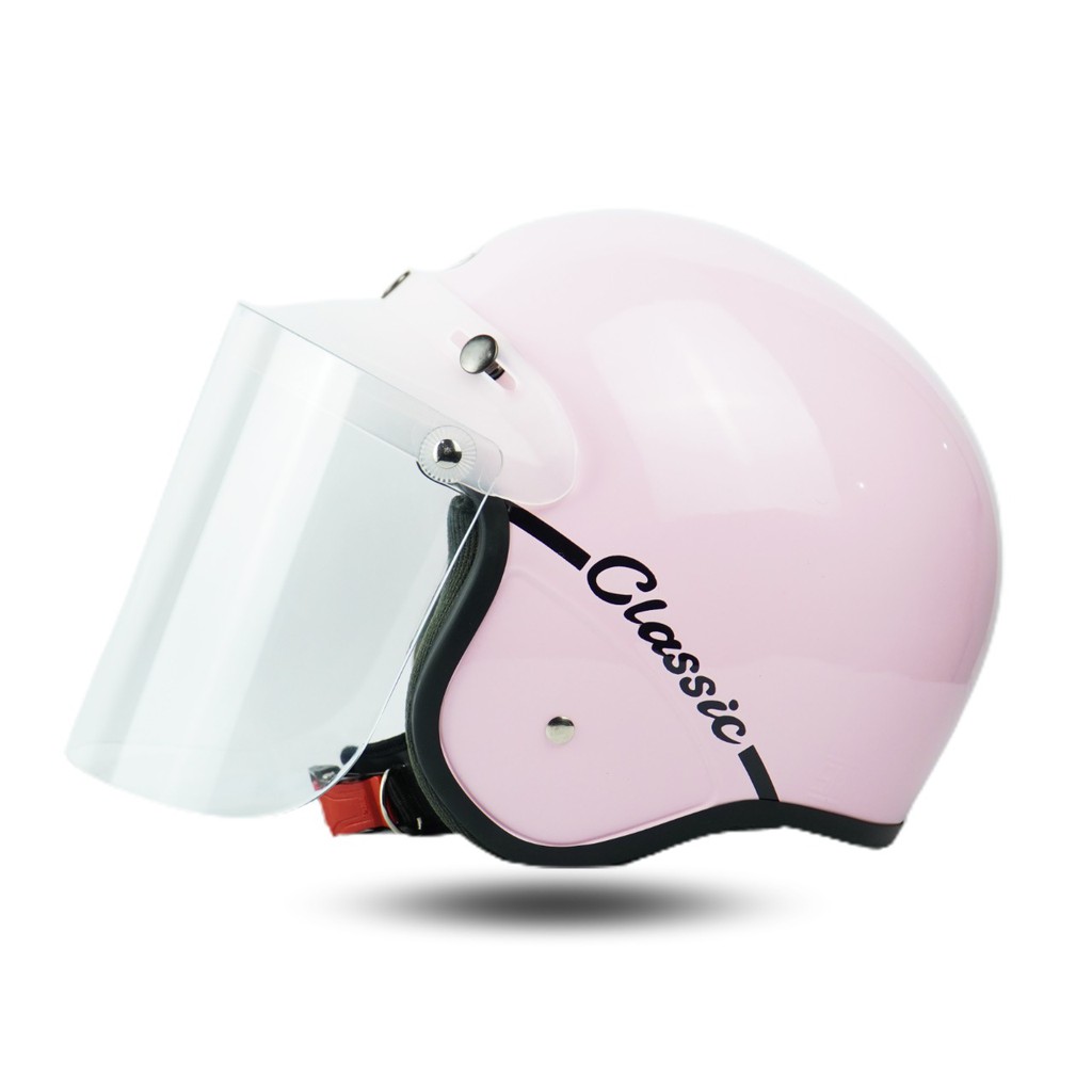 Helm Bogo Wanita Cantik Dewasa Polos Classic Kekinian Motor Sni Helem Retro Kaca Datar Bening