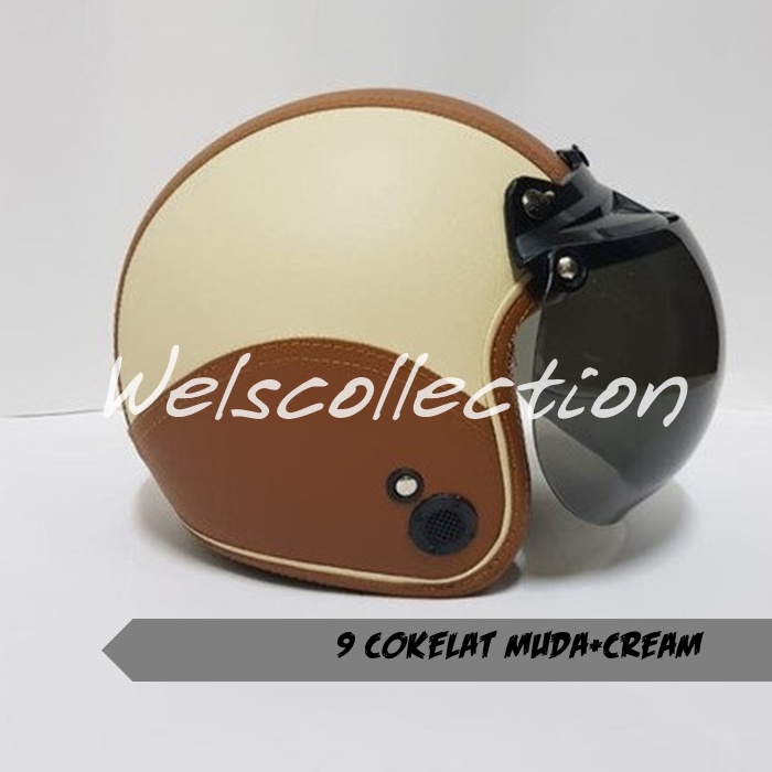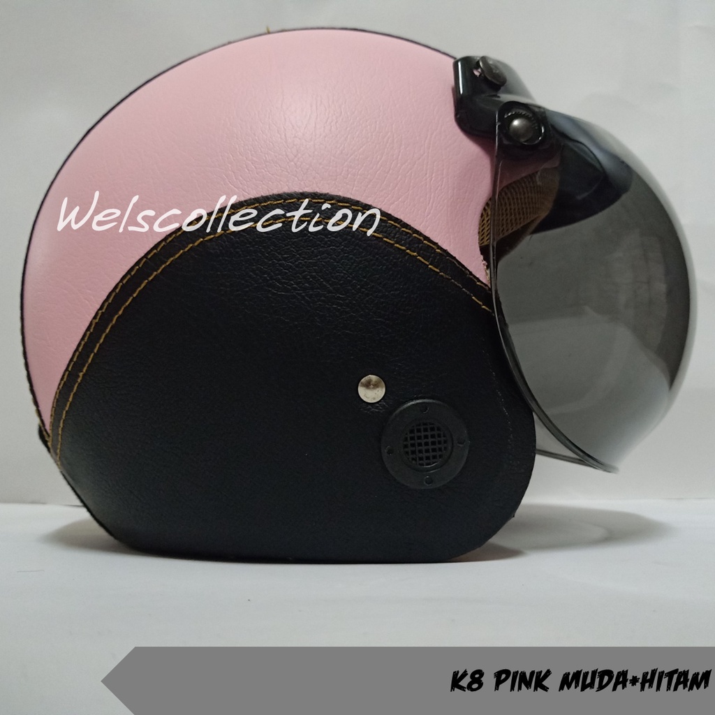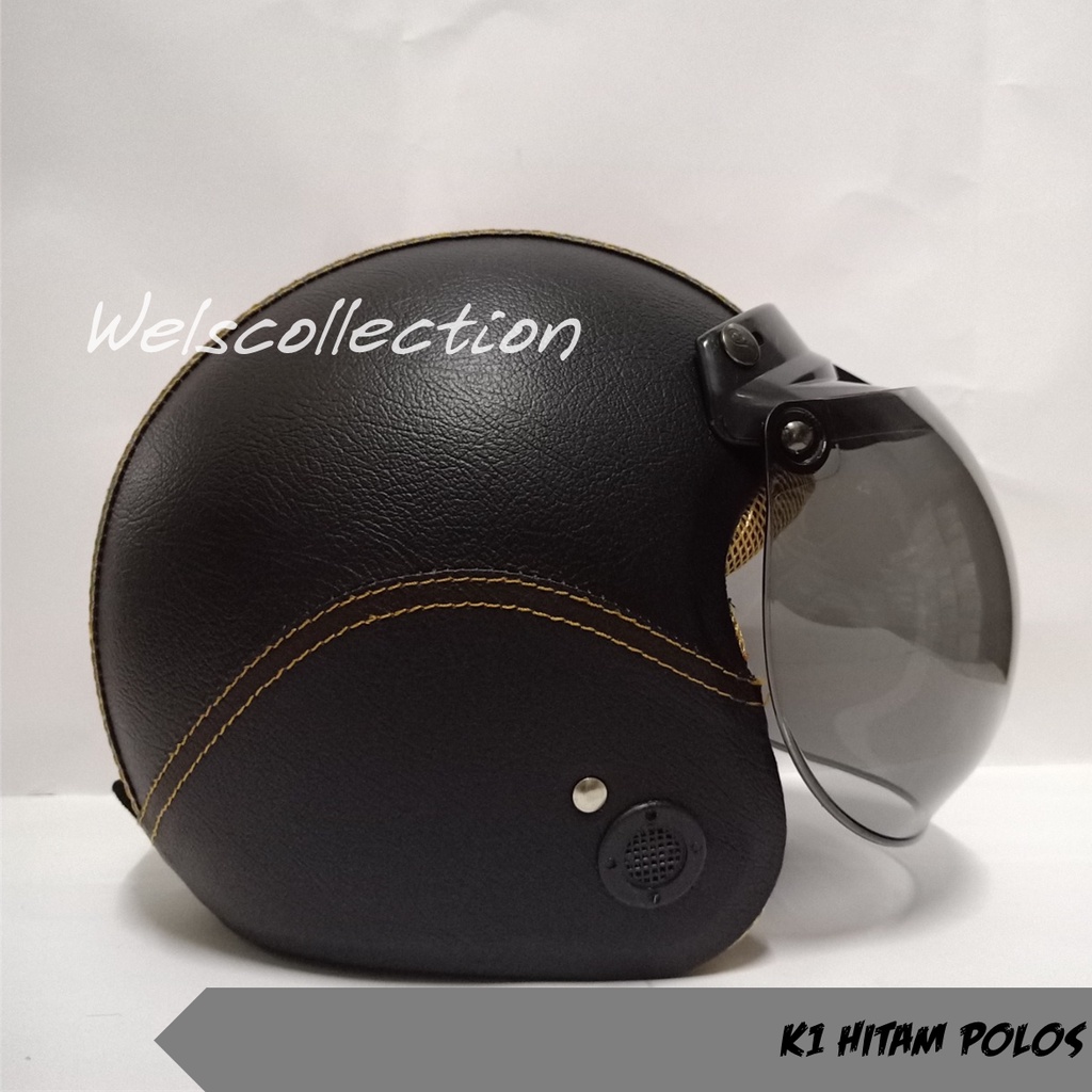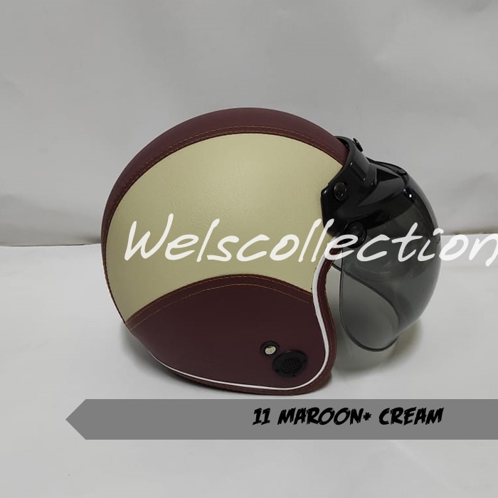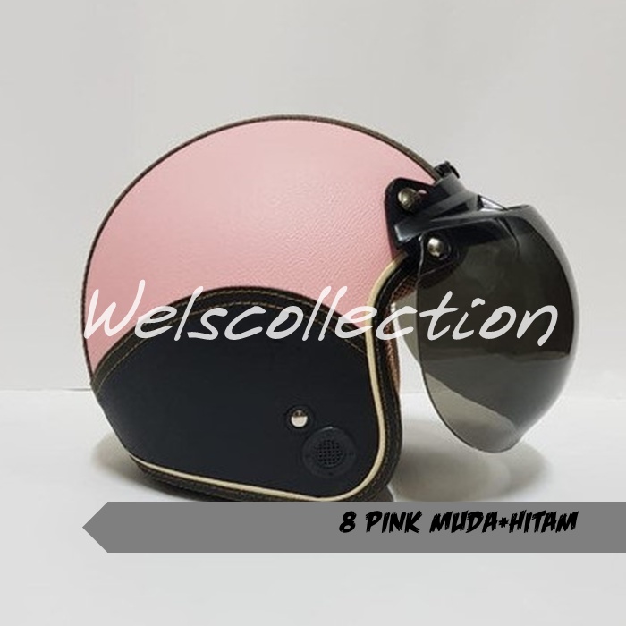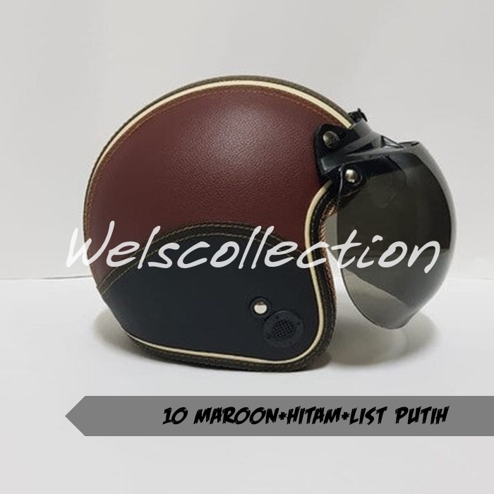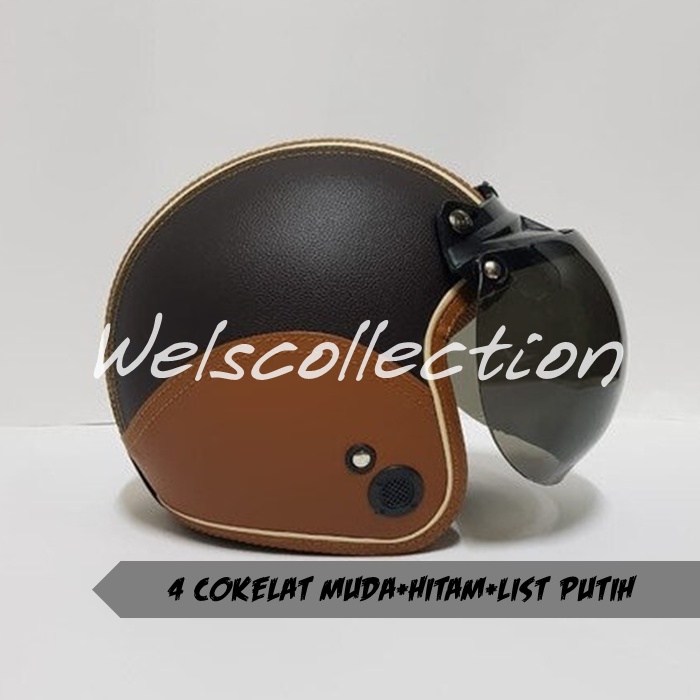 HELM BOGO WANITA DEWASA KACA DATAR RETRO FULL LEHER MURAH POLOS SNI FULL LEHER KULIT