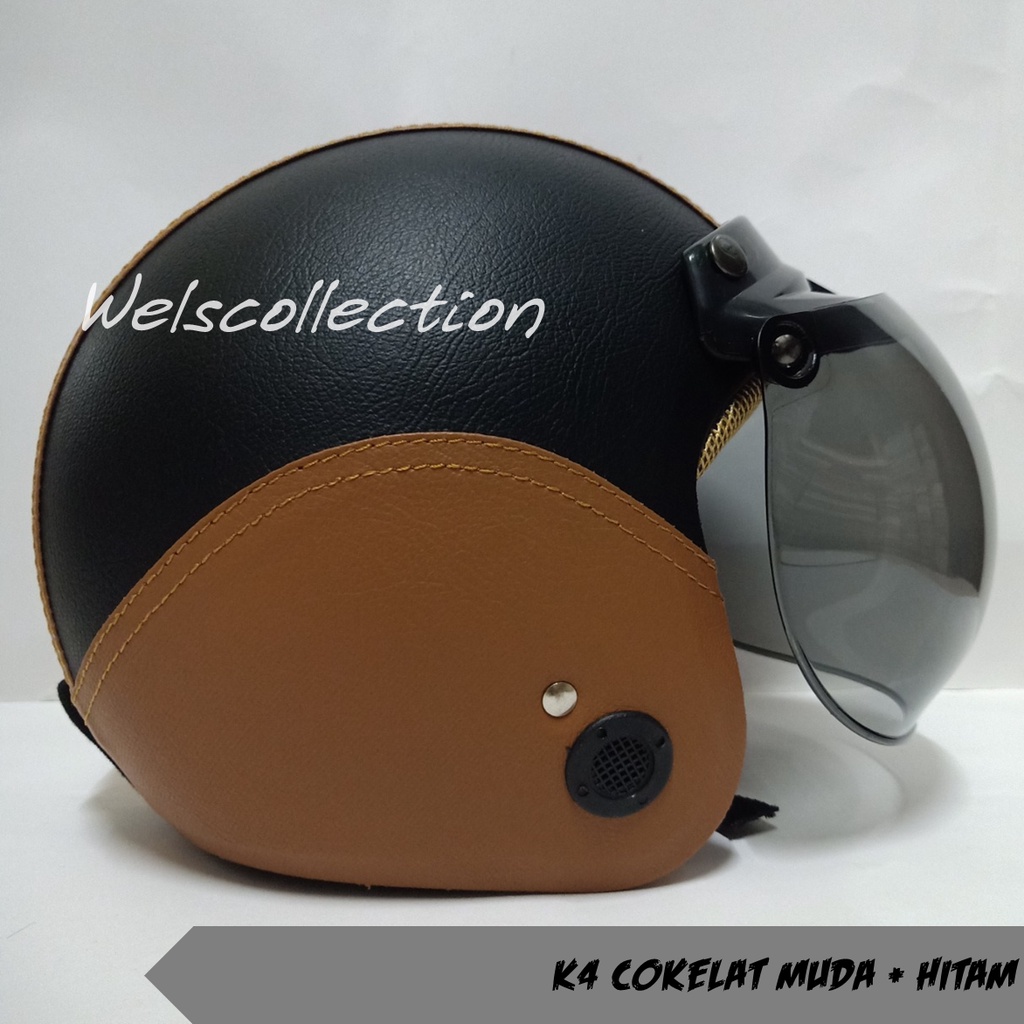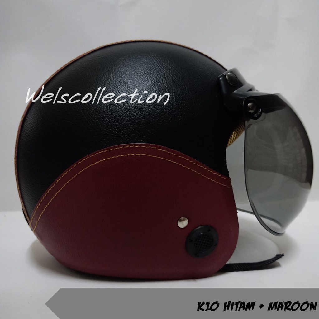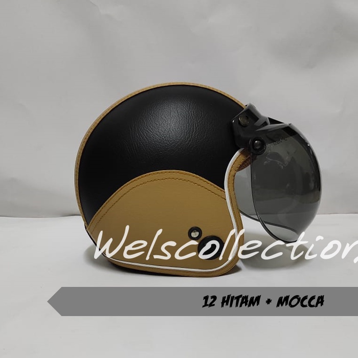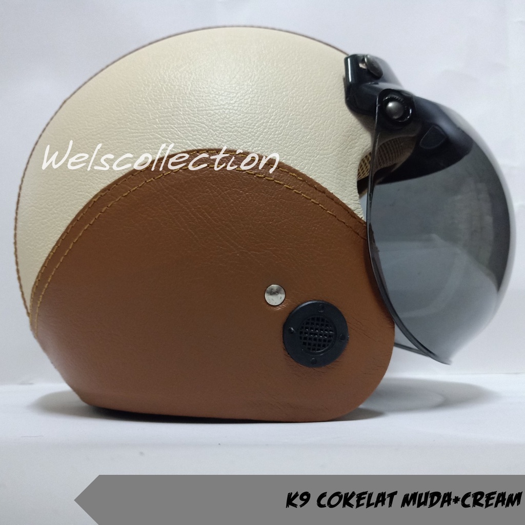HELM BOGO WANITA DEWASA KACA DATAR RETRO FULL LEHER MURAH POLOS SNI FULL LEHER KULIT