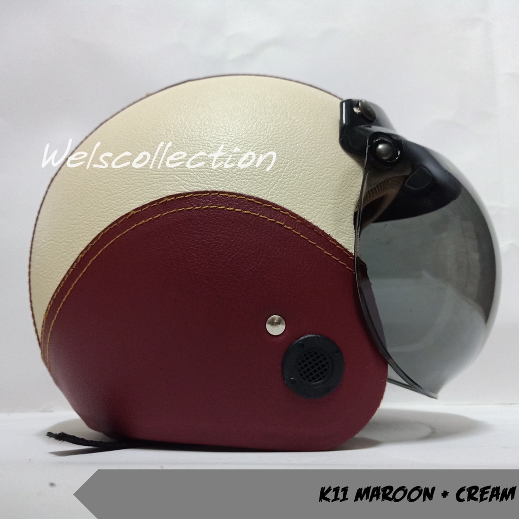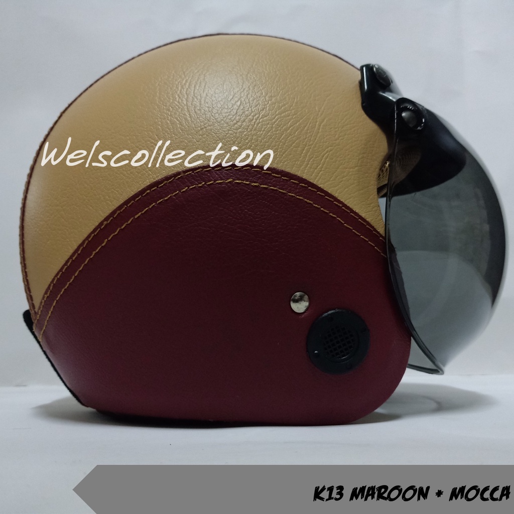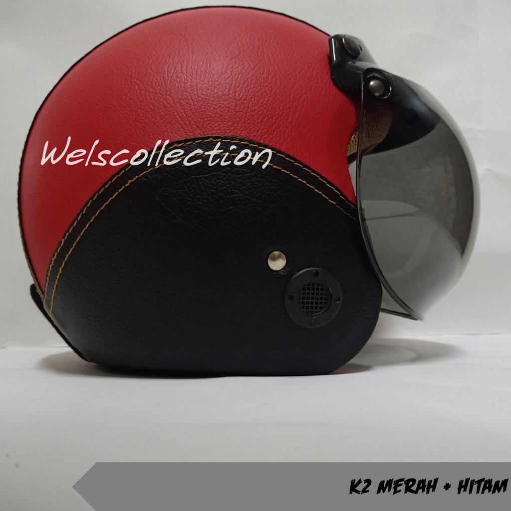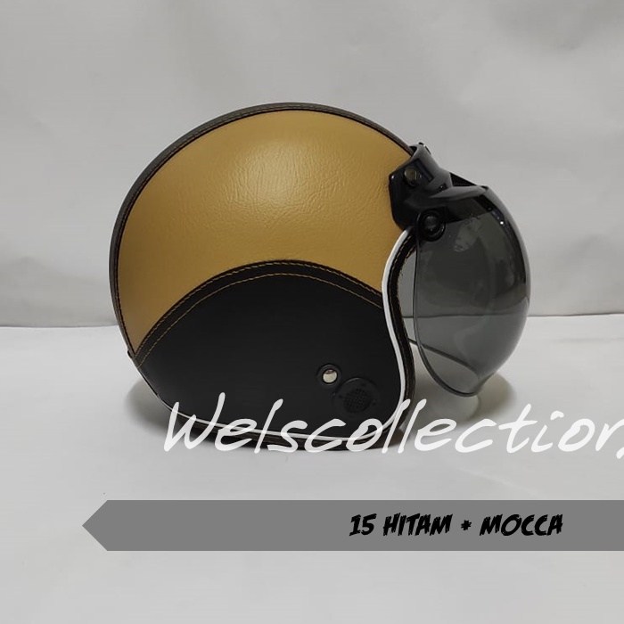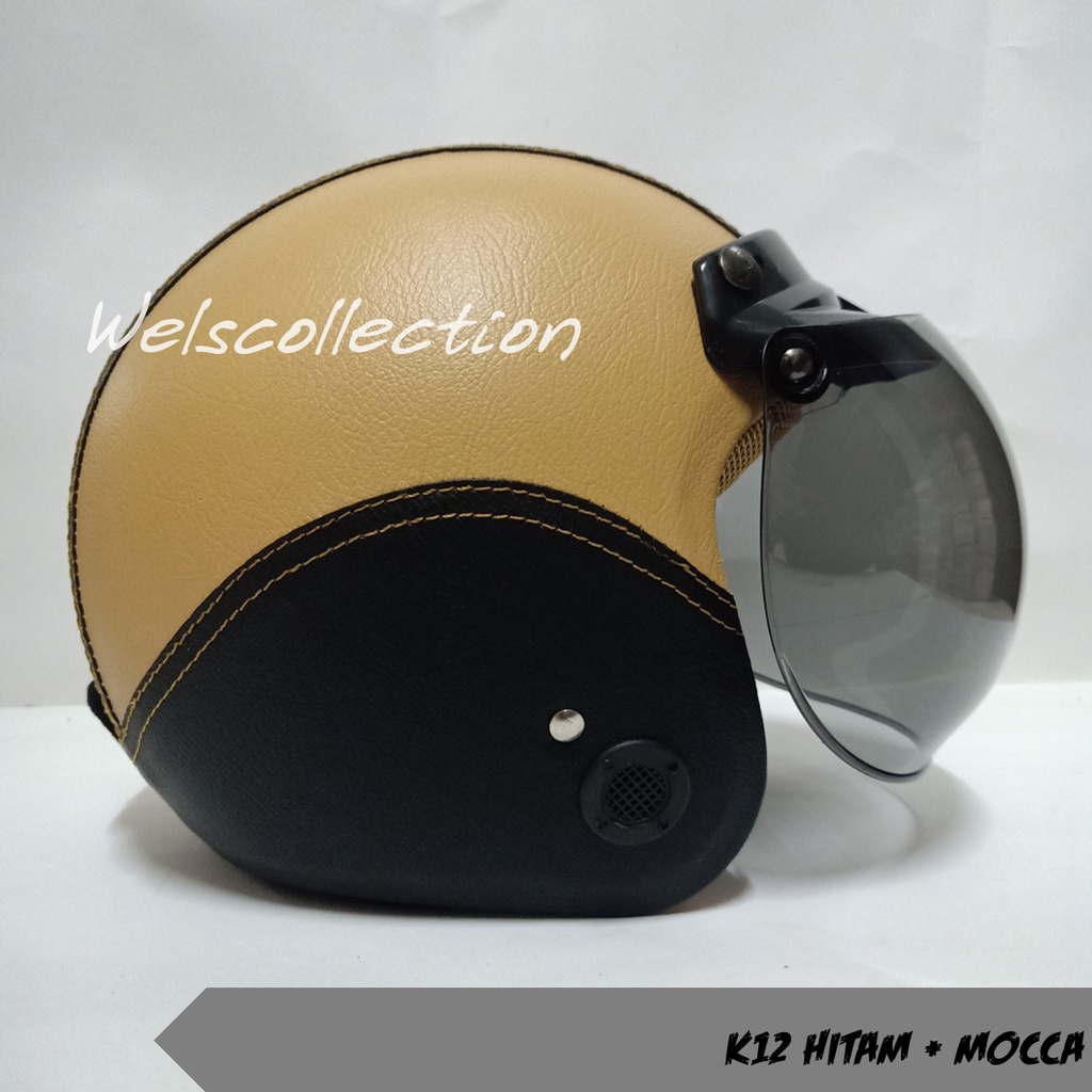 HELM BOGO WANITA DEWASA KACA DATAR RETRO FULL LEHER MURAH POLOS SNI FULL LEHER KULIT