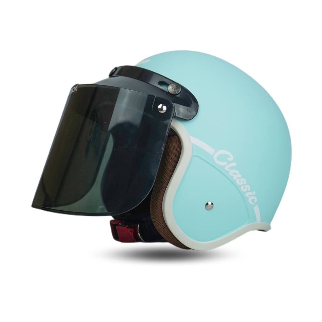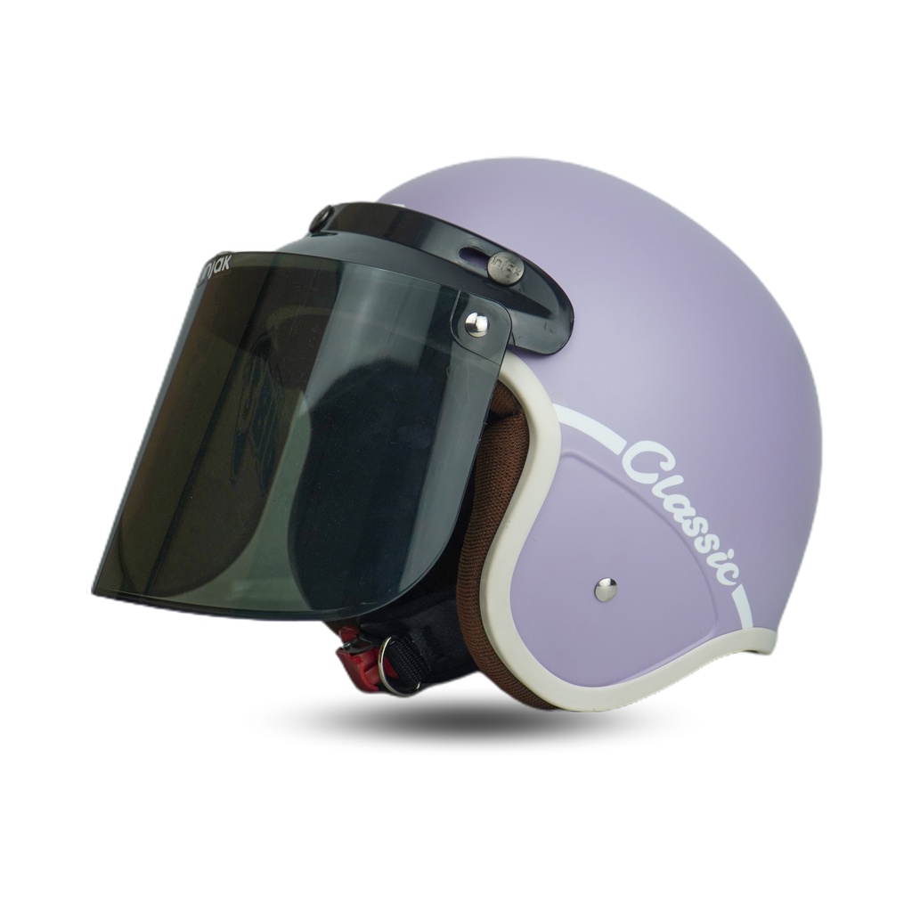 Helm Bogo Dewasa Retro Klasik Garis Polos Pria Wanita Cowok Cewek Full Leher