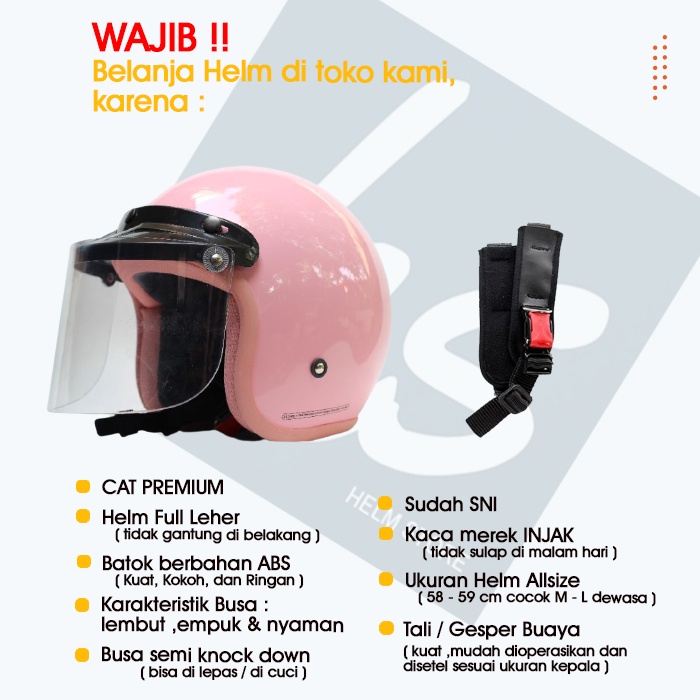 - Produk ini tidak sedang Flash Sale, tidak semua Seller suka Flash Sale, saya rasa ini bukan kekurangan, Jika Anda anggap Harga Rp. 55.000,00 itu murah untuk HELM BOGO WANITA DEWASA RETRO CLASSIC PASTEL POLOS KACA DATAR CEMBUNG SNI TERBARU PINK PASTEL ya ambil saja