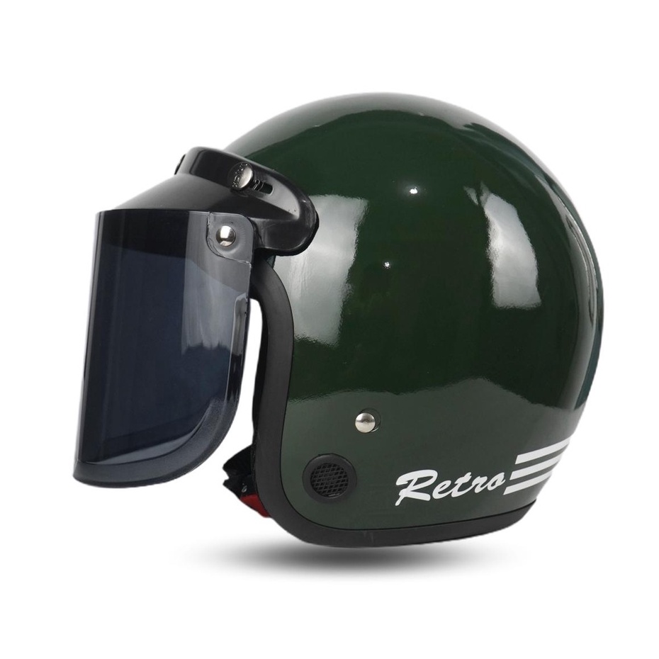 Helm Bogo Wanita Dewasa Retro Sni Murah Klasik Cewek Hijab Motor Classic Bisa Cod Warna Army Gloss