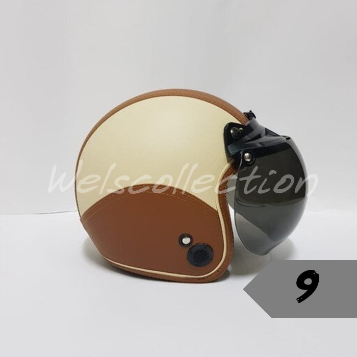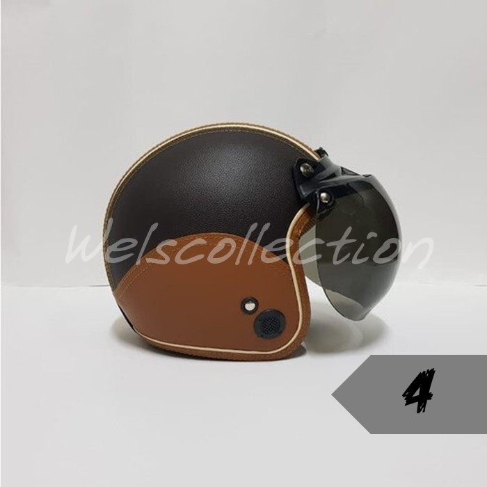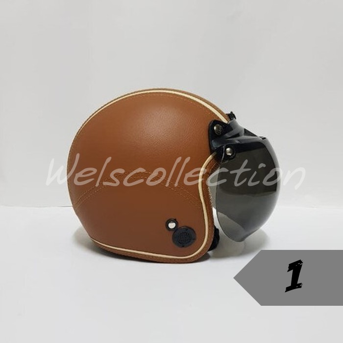 HELM BOGO WANITA PRIA DEWASA RETRO FULL LEHER CLASSIC MURAH POLOS SNI ORI COKLAT 4