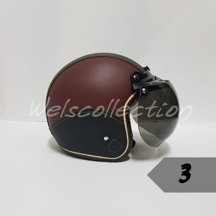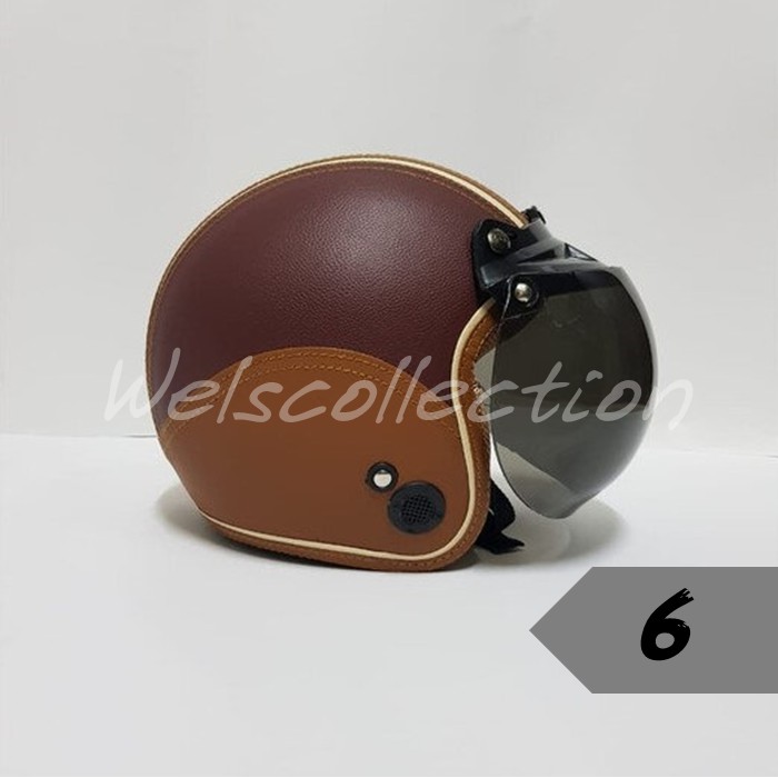 Kelebihan - Kelebihan membeli HELM BOGO WANITA PRIA DEWASA RETRO FULL LEHER CLASSIC MURAH POLOS SNI ORI COKLAT 4 di Toko ini