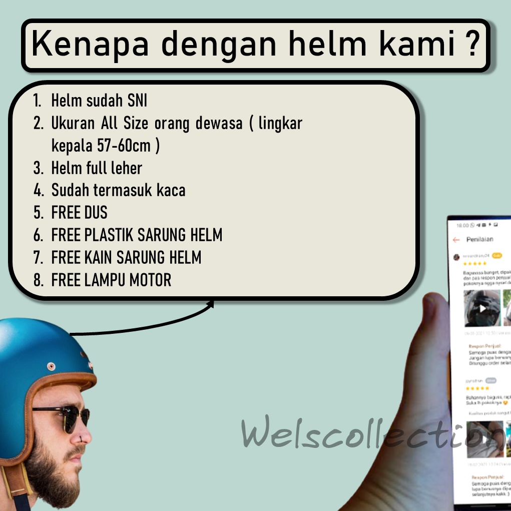 - Produk ini tidak sedang Flash Sale, tidak semua Seller suka Flash Sale, saya rasa ini bukan kekurangan, Jika Anda anggap Harga Rp. 59.000,00 itu murah untuk HELM BOGO WANITA PRIA DEWASA RETRO FULL LEHER CLASSIC MURAH POLOS SNI ORI COKLAT 4 ya ambil saja