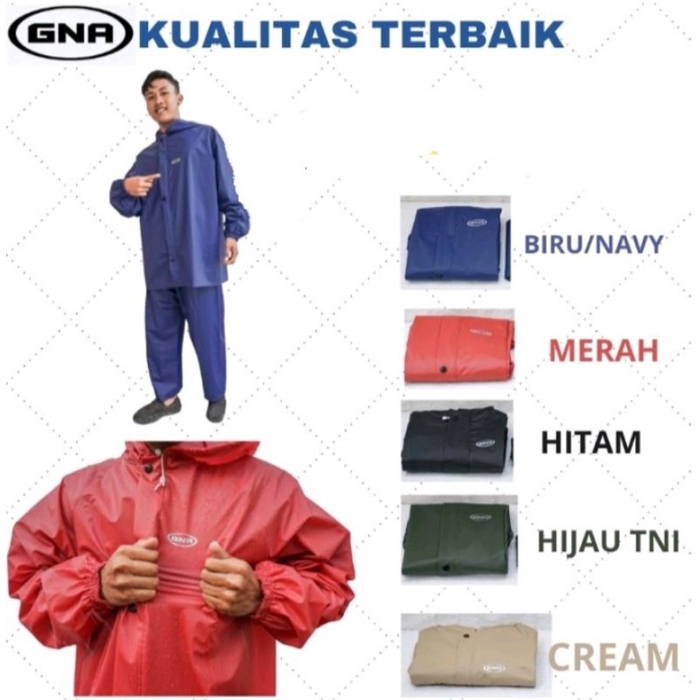 JAS HUJAN GNA PRIA DAN WANITA SETELAN JAKET DAN CELANA BAHAN PVC 0,25 TEBAL ANTI REMBES TERBAIK