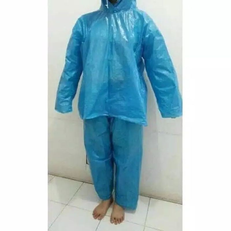 Jas Hujan Plastik LDPE/HDPE Rain Coat travel model PONCO dan Stelan JAKET CELANA