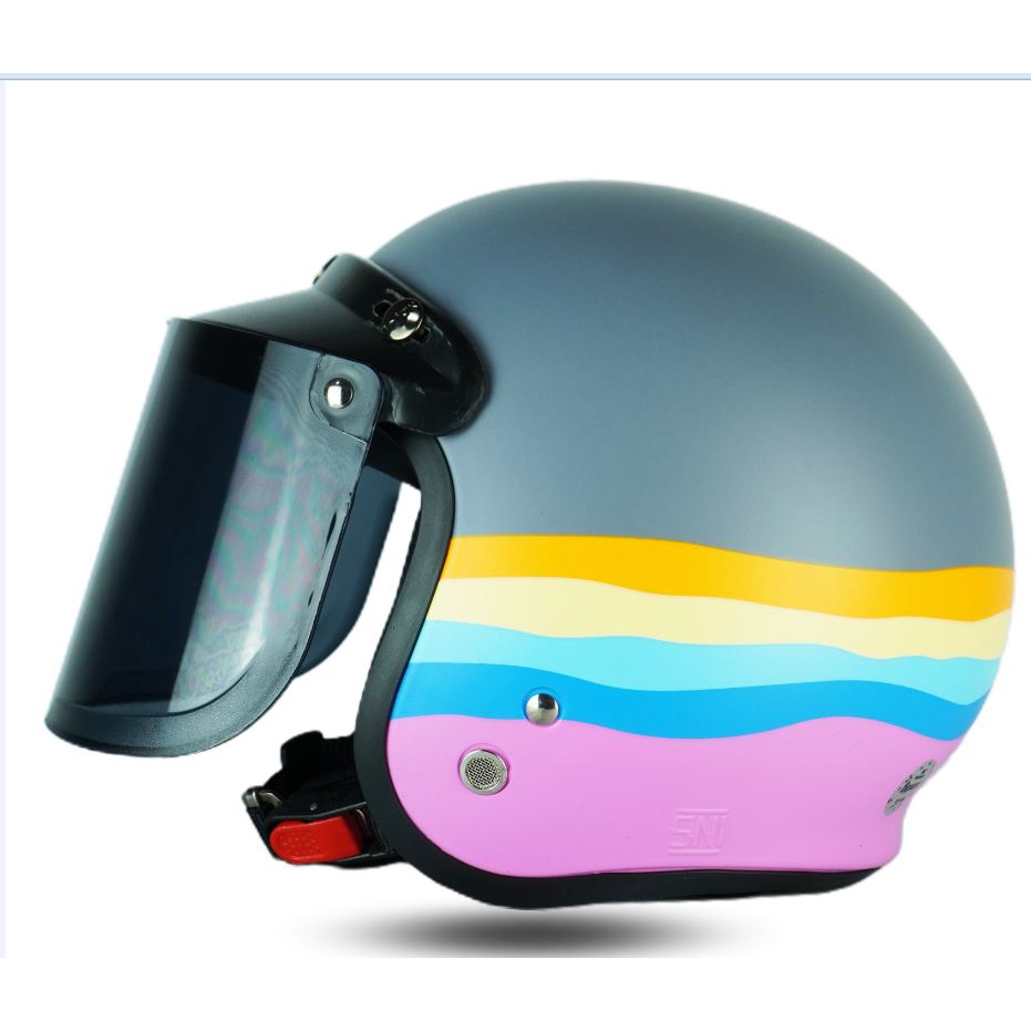 HELM BOGO RETRO DEWASA SNI PRIA WANITA KACA CEMBUNG DATAR FLAT SILVER PELANGI SMOK HITAM GOOGLE