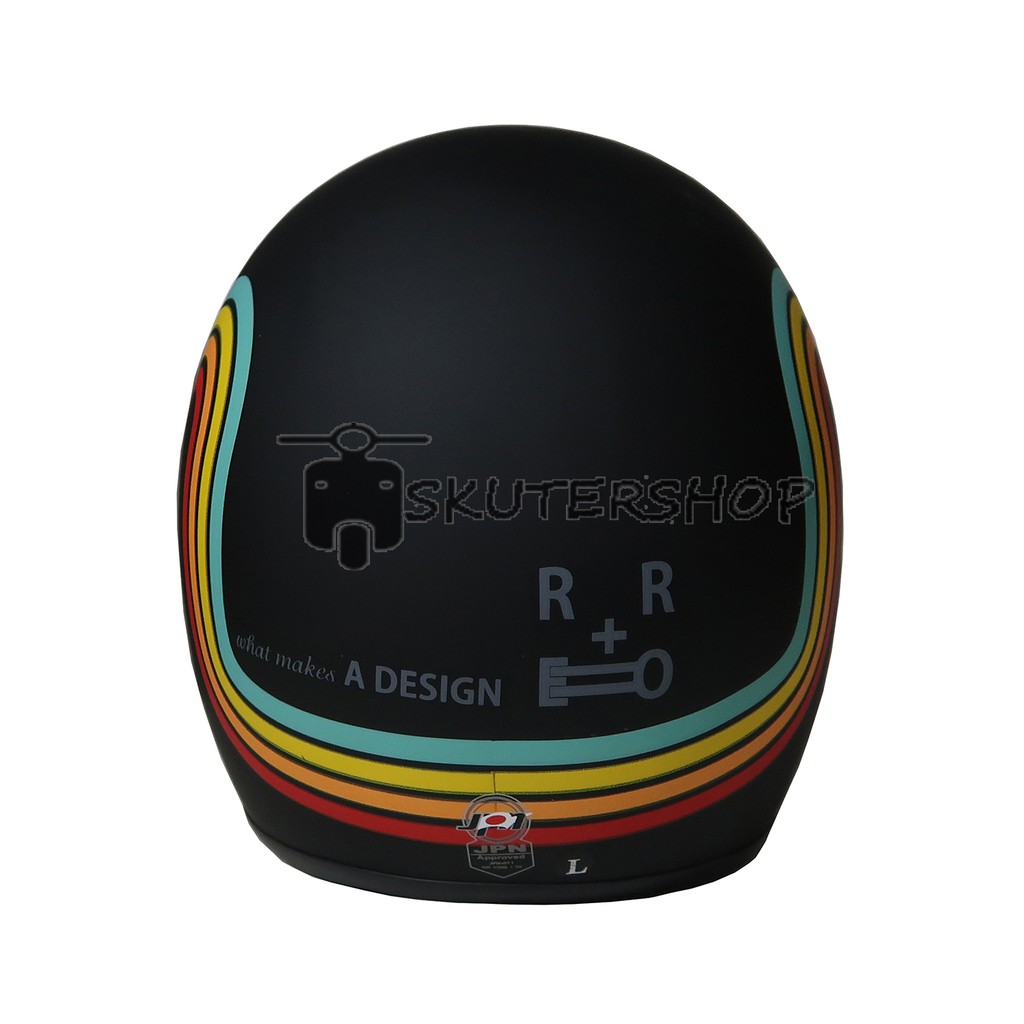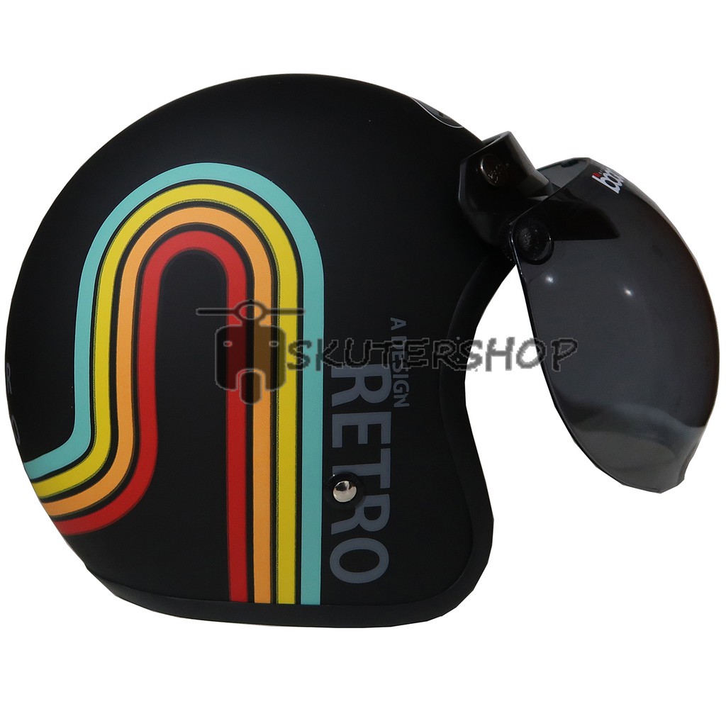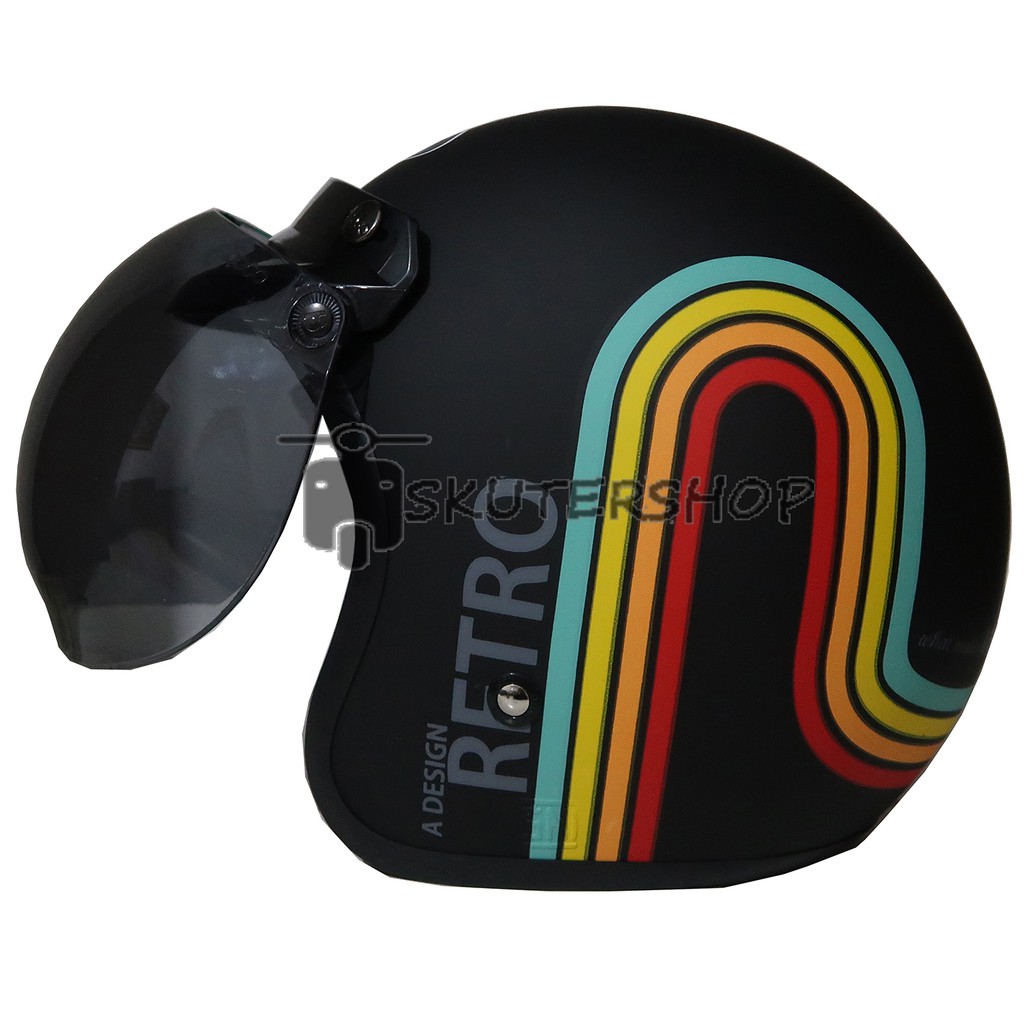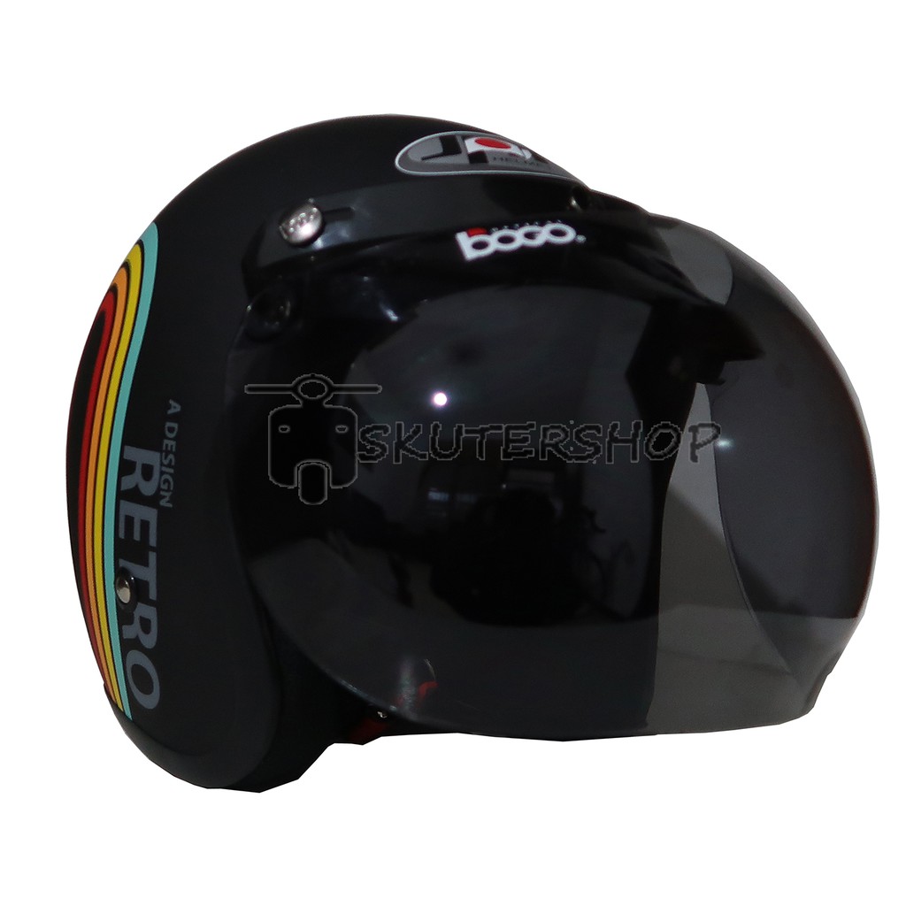 Skutershop Helm Bogo JPN Retro Klasik A Design Retro Rainbow Pelangi Hitam Doff + Kaca Bogo